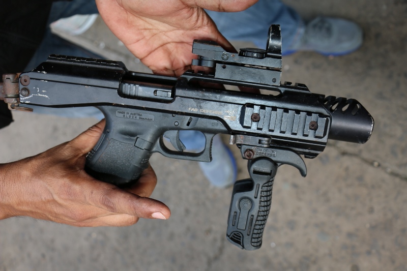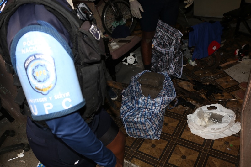 Armas de todo tipo y drogas fueron decomisados por unidades de la Policía Nacional de servicio en la Dirección de Investigación Judicial y la Unidad Preventiva Comunitaria (UPC) tras un allanamiento en un cuarto de la barraca La Rampa en calle 18 corregimiento de Santa Ana, en el que fue aprehendido una persona. La acción policial se llevó a cabo en conjunto con funcionarios del Ministerio Público, quienes ubicaron 9 bultos de presunta hierba seca, 18 sobrecitos con presunta cocaína y en la parte superior del la residencia 7 paquetes más de la posible droga conocida como crispí. Además, armas de grueso calibre, una AK-47, una Glock, una subametralladora y una pesa. Esta mercancía fue ubicada en una fosa común en el piso del cuarto, el cual estaba tapada con cemento y linóleo.. La persona capturada fue puesta a órdenes del Ministerio Público para iniciar con las investigaciones. La Policía Nacional invita a la comunidad a seguir denunciando los hechos delictivos, a través de las líneas telefónicas 104, 511-9081, 511-9339 y al 512-2222 o por intermedio de la cuenta de Twitter @protegeryservir.