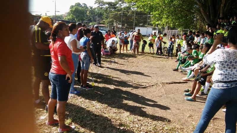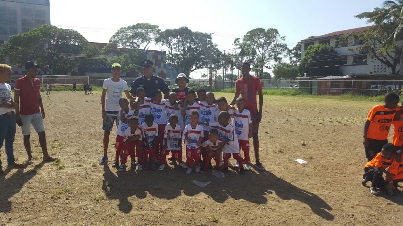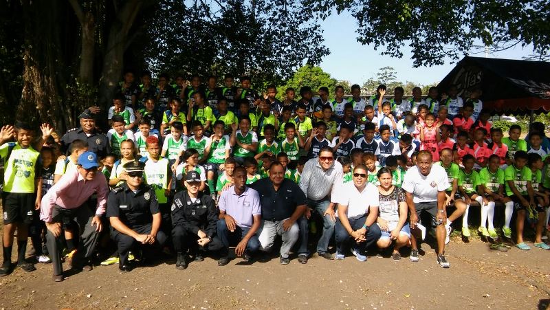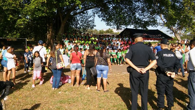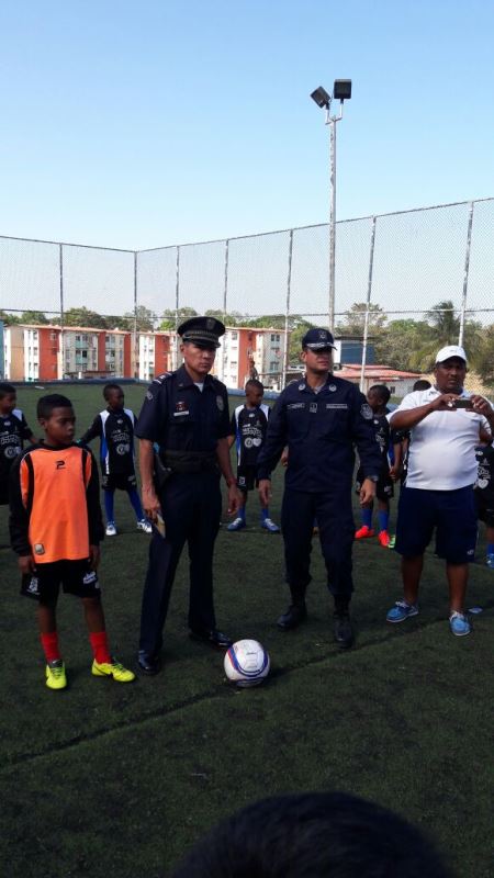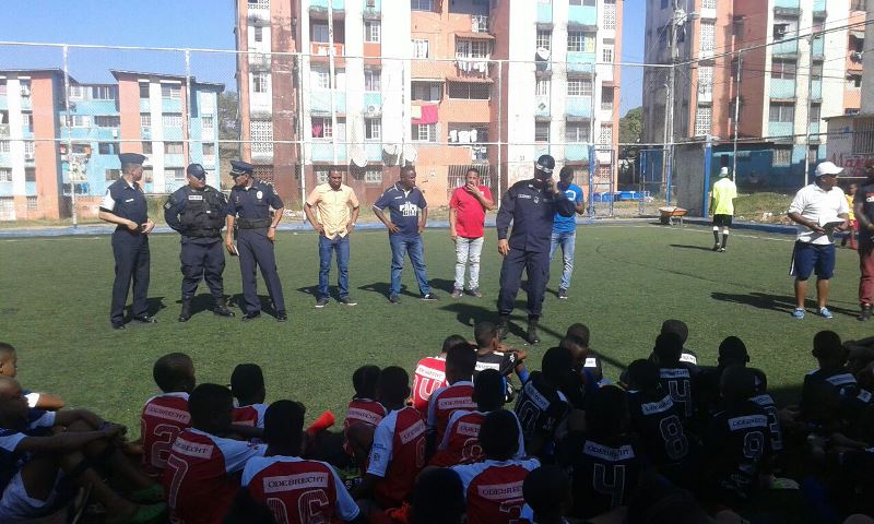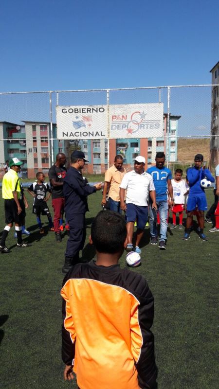 Con la participación de niños y jóvenes, se llevó acabo la inauguración del Mundial del Barrio 2017 "Copa Grupo Rey Activo 2030" en los sectores de San Joaquín, Calidonia y Panamá Viejo. En este sentido, uniformados compartieron con los jóvenes a quienes les brindaron orientación sobre valores y se les reiteró el apoyo del Director General Omar Ariel Pinzón Marín. El Comisionado Esteban Martínez quien asistió en representación del Director General de la Policía Nacional, destacó que las unidades policiales estarán vigilantes en cada uno de los juegos a nivel nacional, para que los familiares y espectadores disfruten en una sana convivencia. La Policía Nacional cumple con el objetivo de preparar a los niños y adolescentes para hacerlos participes y agregar su conocimiento en el área deportiva con el fin de alejarlos de las drogas y la delincuencia. |