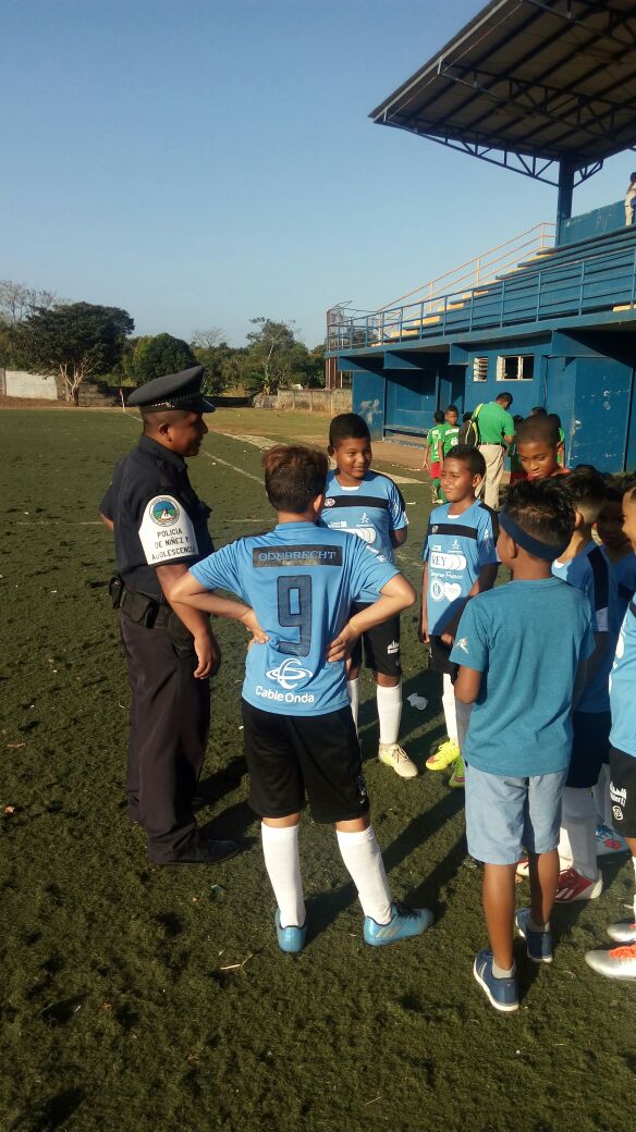 Un total de 160 jóvenes de seis comunidades del distrito de Arraiján que participan en el Mundial del Barrio 2017, iniciaron este jueves este torneo con charlas que fueron impartidas por unidades del Servicio de Niñez y Adolescencia de la Treceava Zona Policial de Arraiján. Las pláticas se darán antes de iniciar los juegos, los temas que impartirán los agentes policiales se enmarca en la prevención del uso de droga y valores que beneficiará a los integrantes de los 6 equipos, cuyas edades están entre 11, 13 y 15 años . Con esta actividad, la Policía Nacional en el distrito de Arraiján busca concienciar a los jóvenes para que se alejen de los peligros de las calles, y que logren trazarse metas positivas para ellos y sus familias. |