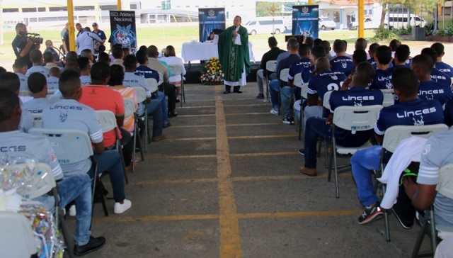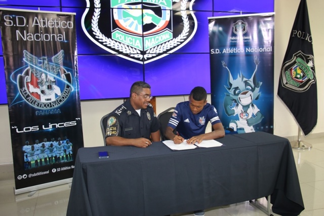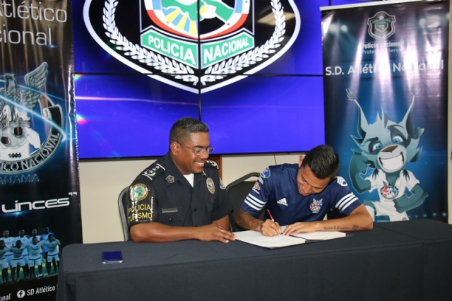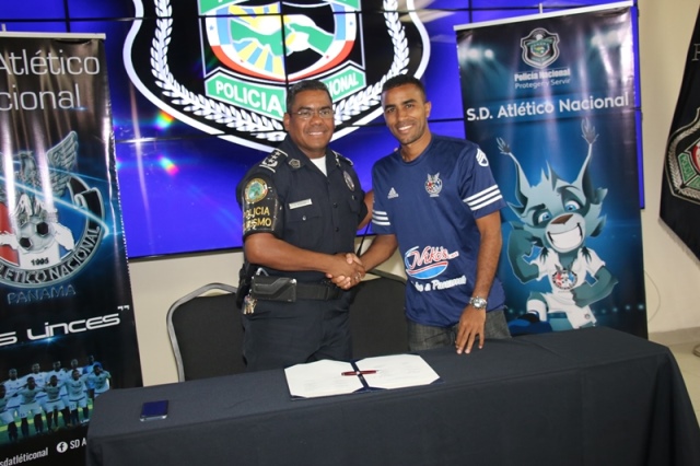 El equipo Sociedad Deportiva Atlético Nacional de la Policía Nacional presentó formalmente sus siete nuevos refuerzos para este año 2017, que inicia el próximo domingo 15 de enero. Se trata de los jugadores panameños Francisco Bethancourt, Ervin Zorrilla, Federico Marine, Luís Zúñiga, Edgardo Panezo, Samuel Steward, Ricardo Guardia. “No será fácil el reto, pero contamos con un buen grupo y esa es una de las formas para salir adelante, mi persona les asegura ese apoyo moral, material al cuerpo técnico, sabemos el compromiso que vamos a enfrentar y a cumplir con los objetivos que tenemos planeados”, destacó el Director General de la Policía Nacional, Omar Ariel Pinzón Marín quien le dio la bienvenida a los nuevos prospectos. El presidente del equipo Sociedad Deportiva Atlético Nacional, Comisionado Aldo Macre, agregó que se ha reforzado con delanteros, jugadores que han sido selección sub-20 de Panamá, lo que hará un equipo más ofensivo con miras a ganar los partidos. Por su parte, Ausberto Valencia Director Técnico dijo quese integrarán gente con un perfil que tiene calidad futbolística, con el objetivo de salir a ganar para mantener al Atlético entre los cuatro primeros. “Es una gran responsabilidad como refuerzo, dar el máximo para cumplir con los objetivos, al igual que yo mis compañeros sabemos del compromiso que vamos a enfrentar y estamos listos para desempeñar una buena labor”, enfatizó una de las nuevas caras del equipo, el jugador Ervin Zorrilla sostuvo Al concluir la firma de los nuevos fichajes se reunieron en la sede la Policía Nacional en Ancón, para expresar a través de una misa sus agradecimientos a Dios. Los futbolistas vestidos con la camiseta azul de la Sociedad Deportiva Atlético Nacional participaron de la homilía donde cantaron alabanzas de “acción de gracias” y peticiones especiales al creador por un año más, por la familia, la felicidad, los hijos y los talentos. El Capellán de la Institución Edgar Flores, los bendijo y les deseo el mejor de los éxitos en la cancha, bendijo a los jugadores, quienes tendrán la responsabilidad de dejar en alto el nombre de la Policía Nacional. A la actividad deportiva se hizo presente el Director General de la Policía Nacional, Omar Ariel Pinzón Marín, el Subdirector General, Javier Castillo, Comisionado Aldo Macre, presidente del equipo Sociedad Deportiva Atlético Nacional, Ausberto Valencia, Director Técnico de La S.D. Atlético Nacional, jugadores y demás invitados especiales.