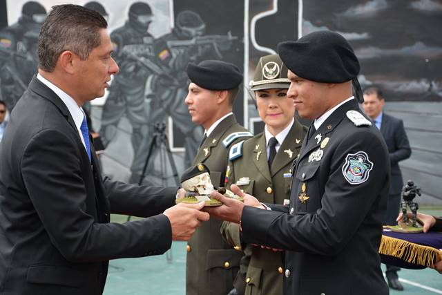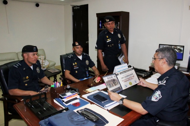 Unidades de la Policía Nacional de servicio en la Dirección Nacional de los Servicios Policiales Especiales (DINASPE), realizaron por espacio de ocho meses el XIX Curso Nacional y X Internacional de Operaciones Especiales y Tácticas Policiales, en el Centro de Capacitación y Especialización en Operaciones Especiales y Tácticas Policiales del (GOE), desarrollado en la ciudad de Guano, Ecuador. Las unidades policiales realizaron operaciones de S.W.A.T., especialidad de búsqueda y rescate en montaña nivel I, en búsqueda y rescate acuático y subacuático. Regresaron graduados el Subteniente Jorge Grajales de la Unidad de Fuerzas Especiales Contra Terrorismo (UFEC), Subteniente Moisés Gutiérrez de la Unidad Táctica de Operaciones Antidroga (UTOA), y el Cabo 2. Reinaldo Ríos Rodríguez de la Unidad de Fuerzas Especiales Contra Terrorismo (UFEC). El Subteniente Moisés Gutiérrez de la Unidad Táctica de Operaciones Antidroga (UTOA), quién se alzó con el segundo puesto de este curso, además se hizo acreedor a la medalla “Espíritu de Cuerpo”. El Subteniente Gutiérrez, logró esta hazaña entre 21 competidores de la talla de México, Bolivia, Panamá y Ecuador, que llegaron a la final. El Secretario General de la Policía Nacional, Manuel De León, recibió en su despacho a los uniformados a quienes exhortó seguir preparándose para servir a la ciudadanía. Los mismos acudieron acompañados del Comisionado y Jefe de la Dirección Nacional de los Servicios Policiales Especiales (DINASPE), Javier Rodríguez.