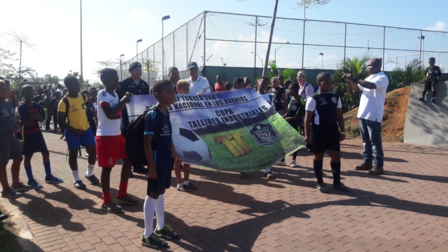 Unidades de la zona policial de Colón inauguró este martes 17 de enero la copa de fútbol “Policía Nacional Talleres Industriales”, en las categoría sub 9 y sub 11, donde participaron un aproximado de 700 niños. La inauguración empezó con un desfile desde la calle 16 hasta la cancha de fútbol de la estación de policial ubicada en la calle 12 avenida Meléndez, donde se realizó el acto de inauguración. El ingeniero Rafael Arosemena de Talleres industriales dijo que este es el segundo año de esta copa donde en alianza con la policía organizan equipos de niños, con la finalidad de brindarles un verano sano lejos de los peligros de las calles. Por su parte el comisionado Carlos Rumbo señaló que la policía realiza este tipo de actividades para prevenir que los niños caigan en grupo de pandillas o en enfrentamientos por ser de una calle o de otra, al contrario que todas se relaciones y desarrollen nuevas amistades