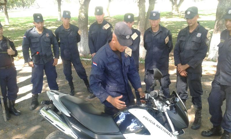 Instructores del Servicio Motorizado “Linces” de la Policía Nacional de Panamá continúan brindando sus conocimientos para entrenar a las unidades de la Policía Nacional de Paraguay, mediante el Curso Especializado en Operaciones Motorizadas Linces que se encuentra en una etapa avanzada desde que llegaron a este país sureño el 1 de enero del 2017. Este miércoles se dictó la fase de mecánica y descripción que es vital para los motorizados linces debido a que les permite conocer el vehículo, las ventajas que ofrece y sus cuidados para hacer de este equipo más efectivo. El entrenamiento físico diario, también es parte de esta capacitación especializada, importante para hacer frente a las situaciones donde se realizan maniobras que exigen de agilidad y buen condicionamiento. Cada fase de este curso se realiza en el terreno con escenarios basados en situaciones reales que se presentan en sus patrullajes. El Curso Especializado en Operaciones Motorizadas Linces se dictara por 3 meses hasta el 14 de abril, tiempo en que los linces panameños se encargarán de entrenar a sus homólogos sobre tácticas policiales, manejo del vehículo, entre otros aspectos para perfeccionar su actuar y brindar un mejor servicio a la comunidad. |