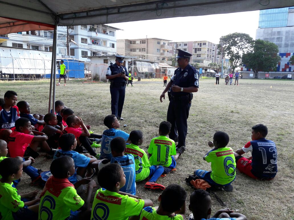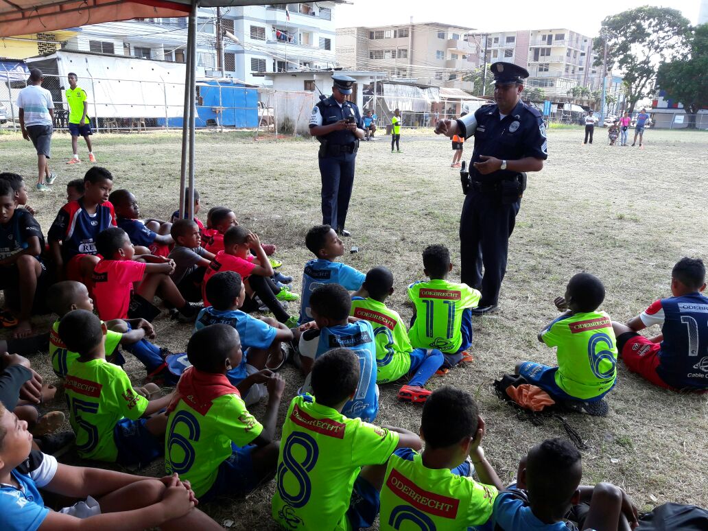 Lo más de 96 equipos de diferentes puntos del país que conforman el “Mundial del Barrio 2017” avanzan a la tercera jornada futbolística, donde grandes y chicos se disputan la “Copa Grupo Rey 20-30”. Nuestras unidades de la Policía Nacional continúan dictando charla de prevención y valores a los niños que compiten en el torneo, en esta ocasión los beneficiados fueron de las comunidades de calle 27 y avenida Méjico Calidonia. Este lunes 23 de enero arrancó la tercera jornada de este mundial, donde las distintas categorías debutan, en este sentido vieron acción los niños de la Sub 7 de los equipos de Balboa (convivencia pacífica) vencieron 3 a 2 calle 17, y la Sub 5 venció 1 a 0 a Pedro Barrio. Posteriormente se enfrentaron los equipos de la categoría Sub 7 Tocumen y Calle 17 quienes empataron. Un total de 10 mil niños de las diez provincias y dos comarcas participan del Mundial del Barrio 2017. |