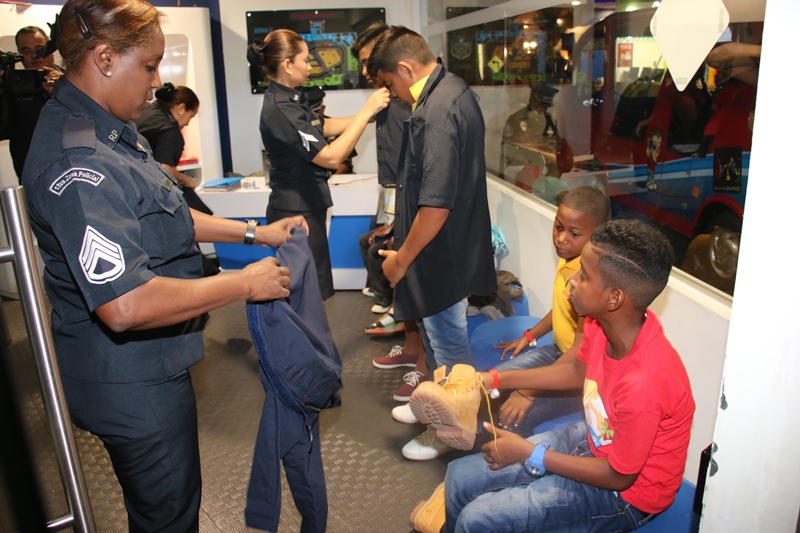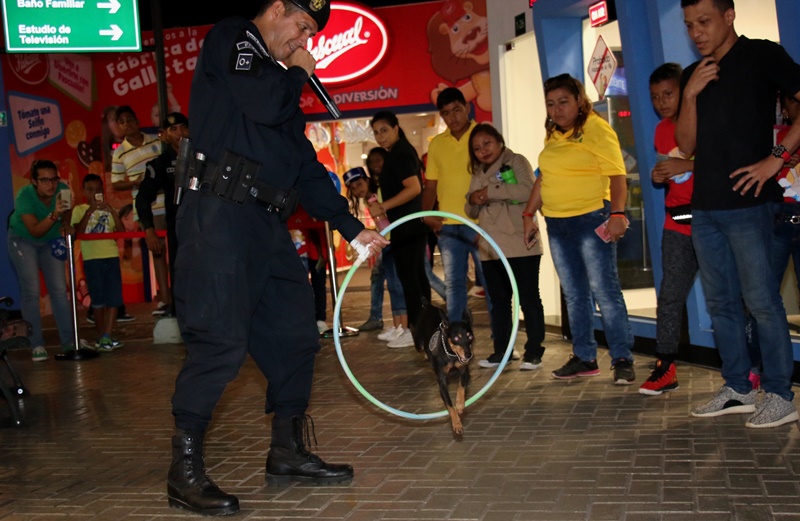 Entre risas y aplausos niños y niñas que se encontraban en la mini ciudad para niños “Divercity”, ubicada en Albrook, recibieron a los perros de la Unidad Canina de la Policía Nacional acompañados de sus respectivos guías. Cada uno de los presentes disfrutó de las diferentes presentaciones de agilidad y destreza que realizaron los canes Argos, Hunter, Negro, Otti, Greco. Las unidades invitaron a varios niños a participar en este show, en el cual se les instruyó como colocarse y que debían hacer para realizar algunos ejercicios de manera segura y ordenada, con cada uno de estos caninos. Dentro de esta mini ciudad, se encuentra el stand de la Policía Nacional, en donde se pudo observar a los niños vistiéndose, y recibiendo directrices por partes de las unidades policiales, para brindar seguridad a los diferentes locales que se encuentran en este lugar. La Policía Nacional ha atendido a más de mil niños, a los cuales se les ha brindado capacitación de cómo ser un buen policía, y resaltando lo importante que es la labor que realiza cada unidad policial en las calles, buscando siempre la seguridad en beneficio de la ciudadanía. |
