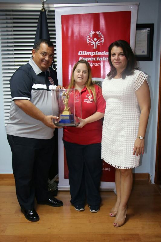 El Director General de la Policía Nacional, Omar Ariel Pinzón Marín, recibió este 3 de febrero la visita de la Directora Ejecutiva de Olimpiadas Especiales, Sandra Sánchez junto a la atleta Brenda Bassan quienes agradecieron el apoyo permanente que les brinda la primera institución de seguridad. La Licenciada Sandra Sánchez agradeció al Director de la Policía por el apoyo continuo que les da a lo largo del año en el desarrollo de la actividades deportivas, facilitándole el recurso humano y en especial que les brinda para trasladar a los atletas a sus entrenamientos. La ocasión también se aprovechó para entregarle un presente al Director de la Policía Nacional, Omar Ariel Pinzón como señal de agradecimiento a la Institución Policial, por todo el apoyo durante estos 3 últimos años. El Director de la Policía Nacional expresó que siempre contarán con el apoyo de la Institución y que estarán presentes en el III Juego Latinoamericano de Olimpiadas Especiales, evento deportivo que albergará a más 800 atletas con discapacidad intelectual y sin discapacidad de 21 naciones.