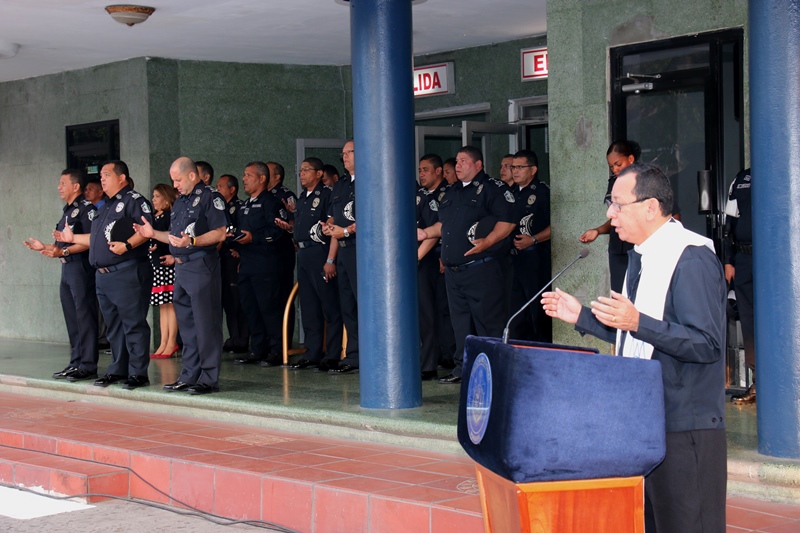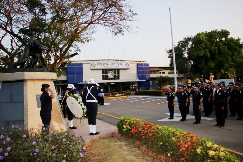 Unidades y personal no juramentado de las diferentes direcciones, departamentos, unidad y servicios de la Policía Nacional se reunieron este lunes 6 de febrero en el primer acto cívico correspondiente al mes de febrero, en el que con gran respeto rindieron honor al Pabellón Nacional. El Director General de la Policía Nacional, Omar Ariel Pinzón Marín, el Subdirector General, Javier Castillo además de miembros del directorio y jefes de zonas, estuvieron presente en este acto que inició con la invocación religiosa a cargo del capellán Edgar Flores, quien pidió encomendarse en las manos del señor para que guie el andar de cada uno. El Subdirector General, Javier Castillo destacó la labor permanente que llevan a cabo las unidades policiales a nivel nacional para brindar seguridad a cada uno de los panameños, labor que continuará tras la llegada de las festividades carnestolendas y semana santa. “Seguiremos con los diferentes operativos de verano, incrementando aún más la presencia policial a nivel nacional” afirmó Castillo. Acompañado por su Directorio, el jefe policial colocó ante el monumento a los caídos una ofrenda floral como símbolo del recuerdo permanente en la mente de los uniformados. Finalmente al compás de la Banda de Música miembros de la institución entonaron las gloriosas notas del Himno Nacional.