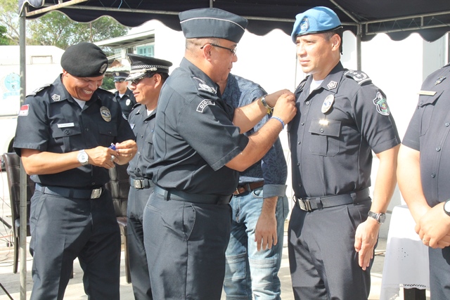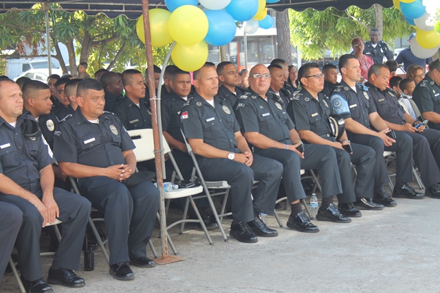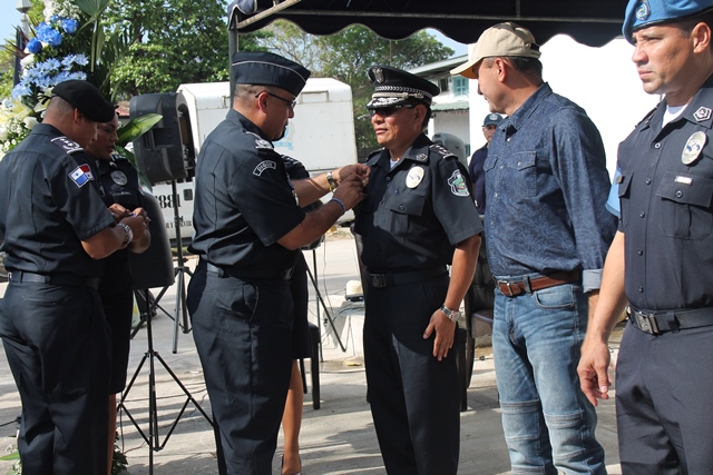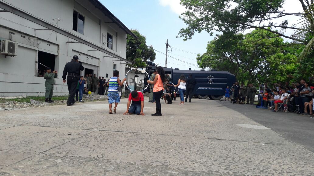 Unidades de la Policía Nacional de servicio en la Unidad de Control de Multitudes celebraron con diversas actividades su XXVII aniversario al servicio de la comunidad. Desde muy temprano miembros de del Directorio Policial, familiares e invitados especiales, participaron de la celebración de una eucaristía presidida por el capellán de la institución, Edgar Flores, quien destacó la importancia de la evidencia del Espíritu Santo en el diario vivir del policía, quien denota amor, alegría, paz. El Subdirector en Asuntos Penitenciarios de la Policía Nacional, David Ramos quien también fungió como jefe de esta unidad, fue condecorado por medallas al mérito. Mientras que el Comisionado y jefe de la UCM, Benjamín Sambrano exhortó a los uniformados que conforman esta unidad a continuar su trabajo con coraje y esmero. El Comisionado y Subdirector en Asuntos Penitenciarios de la Policía Nacional, David Ramos entregó sendas medallas de honor al Orden Público a miembros de este grupo, quienes durante sus años de servicio han dado lo mejor de sí al país. Además fueron condecorados los Comisionados Darío Díaz, Raymundo Barroso, Alfonso Vega Pino, el Subcomisionado Doni Franco y el mayor Jorge Domínguez por el trabajo entregado cuando desempeñaron el rol de jefes de esta unidad. Las actividades continuaron con una tarde familiar, donde las unidades junto a sus hijos se deleitaron con la presentación del show de canes, por la Unidad Canina de la Policía Nacional (UCAN), con sus habilidades y destrezas mostradas a los espectadores robaron aplausos, sonrisas y gestos de admiración. Los presentes también degustaron de diversos platos de comidas, juegos, cantos y obsequios |