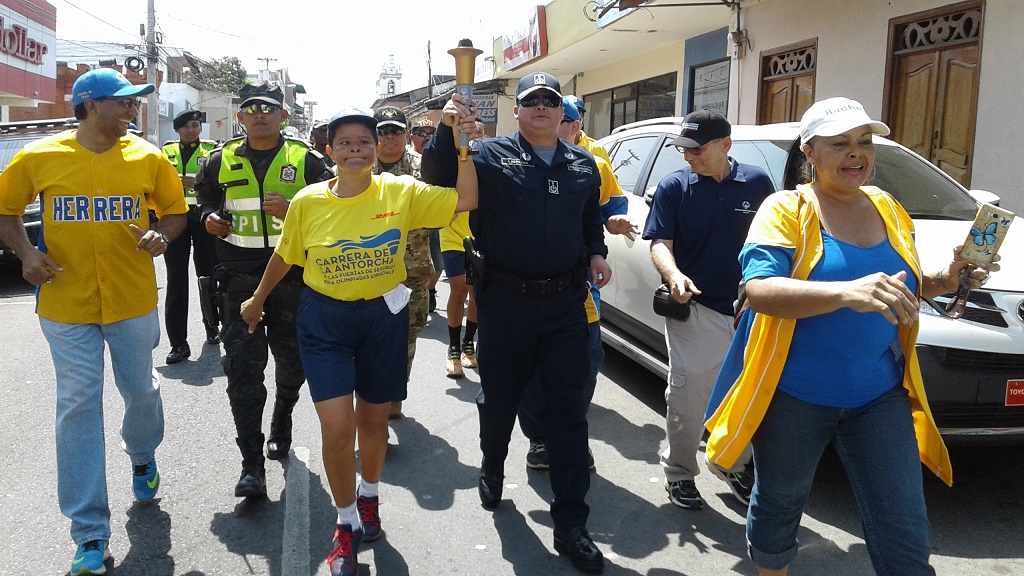 La antorcha de las Olimpiadas Especiales llegó este fin de semana a la provincia de Herrera. Unidades policiales y miembros no juramentados de la Sexta Zona Policial, realizaron el recorrido por las principales calles de Chitré en compañía de los atletas. El comisionado Ismael Herrera Delgado, jefe de la Zona de Policía de Herrera, recibió la antorcha de manos del comisionado Frank Pinilla, jefe de la Zona de Policía de Los Santos. En el acto de entrega que se llevó a cabo en el parque Unión de Chitré, estuvo presente el Doctor Raúl Rivera, gobernador de la Provincia de Herrera y demás autoridades. Como Institución de Seguridad Pública reafirmamos nuestro compromiso y respaldo incondicional a nuestros atletas de las Olimpiadas Especiales 2017. La actividad no paró aquí, porque a tempranas horas del pasado domingo, el Jefe Policial de Herrera, comisionado Ismael Herrera acompañados por unidades policiales se trasladó hasta la hermana provincia de Coclé, a realizar la entrega de la antorcha al comisionado Aníbal Prado; jefe de la Zona de Policía de Coclé. |