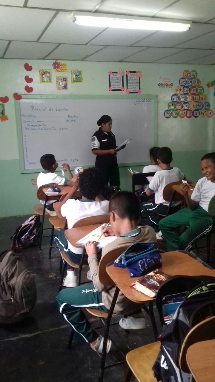 Este miércoles 3 de mayo, unidades de Policía de Niñez y Adolescencia, impartieron charlas sobre el programa de Educación para la Resistencia al Uso de Drogas (D.A.R.E) para estudiantes de la Escuela 4 de Abril, ubicada en el corregimiento de Changuinola. Se trata de un total de 90 estudiantes entre niños y niñas, quienes recibieron las lecciones por unidades policiales que buscan alejar a nuestra juventud del flagelo de las drogas. Se busca apoyar a estos Centro Educativos a prevenir el uso de drogas y la violencia entre los jóvenes, y que sean agentes multiplicadores del mensaje en sus comunidades.