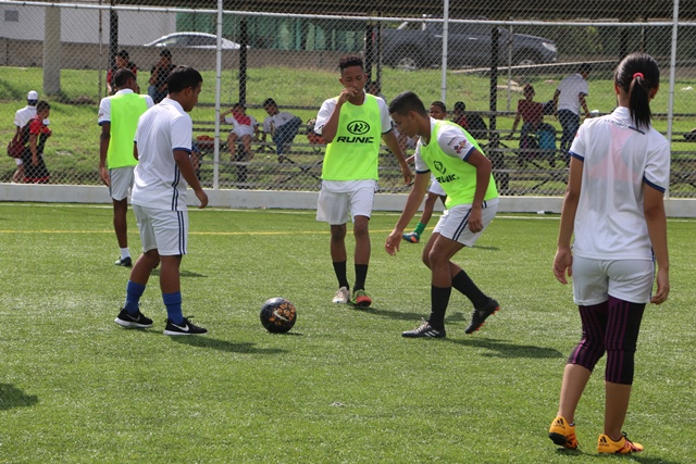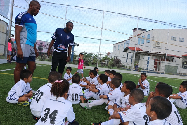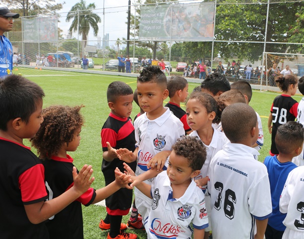 El semillero del fútbol nacional participó este sábado 12 de mayo en los entrenamientos de la Academia de Fútbol Sociedad Deportiva Atlético Nacional en la cancha sintética de la sede policial ubicada en Ancón, que trabaja en categorías menores con niños de 5 años a jóvenes de 17 años. Las diferentes categorías se enfrentaron en juegos amistosos junto a los jugadores del equipo Halcones Panamá Este, dirigido por la miembro no juramentada Jennifer Rose quien labora en el Centro de Atención Integral a la Primera Infancia (CAIPI) en Balboa. El Director General de la Policía Nacional Omar Ariel Pinzón se hizo presente junto a miembros del directorio y familiares de los niños y jóvenes que pertenecen a la academia. “Esta iniciativa se realiza con miras a beneficiar a los hijos y familiares así como a los amigos de la Policía Nacional como parte del Programa de Convivencia Pacífica”, mencionó el jefe policial. En tanto el agente y entrenador Ricardo Harper explicó que esta academia busca la formación integral de deportistas hacia el fútbol profesional y sobre todo alejar a los niños y jóvenes de las malas influencia, además menciono que se está reclutando niños de áreas como San Miguel, El Chorrillo y Curundú. Entre los resultados de los juegos realizados podemos mencionar: -Categoría Sub 5 S.D. Atlético Nacional 2 - 1 Halcones de Panamá Este -Categoría Sub 7 S.D. Atlético Nacional 1- 0 Halcones de Panamá Este -Categoría Sub 9 S.D. Atlético Nacional 3- 0 Halcones de Panamá Este -Categoría Sub 11 S.D. Atlético Nacional 1- 1 Halcones de Panamá Este -Categoría Sub 13 S.D. Atlético Nacional 11- 1 Halcones de Panamá Este -Categoría Sub 17 S.D. Atlético Nacional 3 - 0 Halcones de Panamá Este