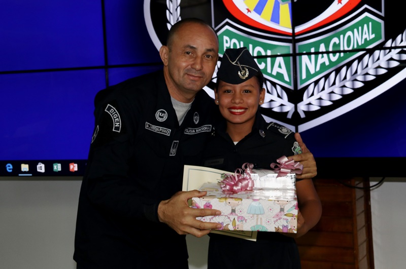 Luciendo uniformes policiales confeccionados a su medida, mientras que que otros de civil, niños y niñas de diferentes puntos de la República reemplazaron a miembros del Directorio de la Policía Nacional en lo que fue el “Directorio Infantil”, celebrando el Día del Niño. La niña Tania Michelle Pineda de 11 años, reemplazó por un día al Director General de la Policía Nacional, Omar Ariel Pinzón Marín como parte de la celebración. La pequeña agradeció a la Policía Nacional el permitirles ser parte de esta por un día y expresó su felicidad de portar este uniforme, uniforme que con orgullo porta su padre quien es miembro de esta institución. “Exhorto a los niños y niñas para que luchen por sus sueños y metas, que estudien para ser mejores personas y un día también pueda tener este privilegio”, indicó durante su discurso en el acto. La alegría y entusiasmo de estos niños de portar el uniforme era evidente en sus sonrisas, cada uno de ellos recibió obsequios y certificados de la mano de sus homólogos al participar de un agasajo que les tenía preparada esta institución. “Nos honra como Policía Nacional tener a los hijos de uniformados hoy ocupando este Directorio Infantil, porque es bien merecido por sus esfuerzos y no solo ellos sino también el de sus padres, que los guían para ser hombre y mujeres de bien”, manifestó el Subdirector General Alonso Vega Pino Los agasajados disfrutaron de los muñecos de dibujos animados como “Dora la Exploradora”, “Diego Go”, “Tiger” entre otros. Durante la actividad estuvieron presentes El Director General de la Policía Nacional, Omar Pinzón, Miembros del Directorio Policial y Padres de Familia. Cada niño recorrió el Dirección y Departamentos a los cuales representaban, para conocer sus funciones en la institución. |