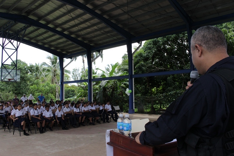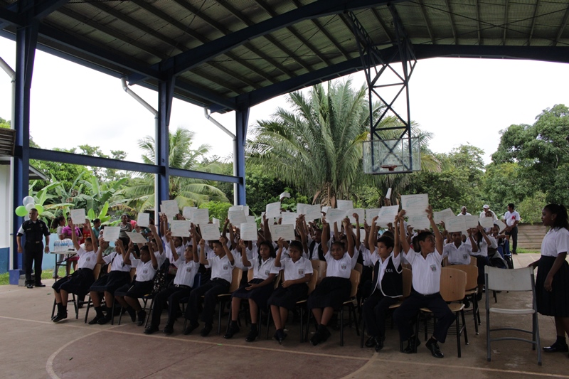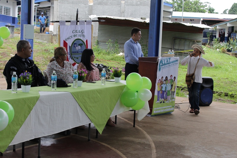 Un total de 192 estudiantes de nivel primario de la escuela 11 de octubre de Burunga, culminaron satisfactoriamente el programa G.R.E.A.T. La clausura, presidida por el Subcomisionado José Melamed, se realizó este martes 29 de agosto en el gimnasio del centro educativo en el que participaron docentes y padres de familia. Durante el desarrollo del programa el niño Héctor Díaz cantó décimas referente a los valores. También participó el Conjunto Típico de la escuela quienes interpretaron tres piezas musicales. El Subcomisionado Melamed, felicitó a los participantes por participar de los programas preventivos de la Policía Nacional y los instó a poner en práctica los conocimientos aprehendidos. La ceremonia finalizó con la entrega de certificados a los participantes. |