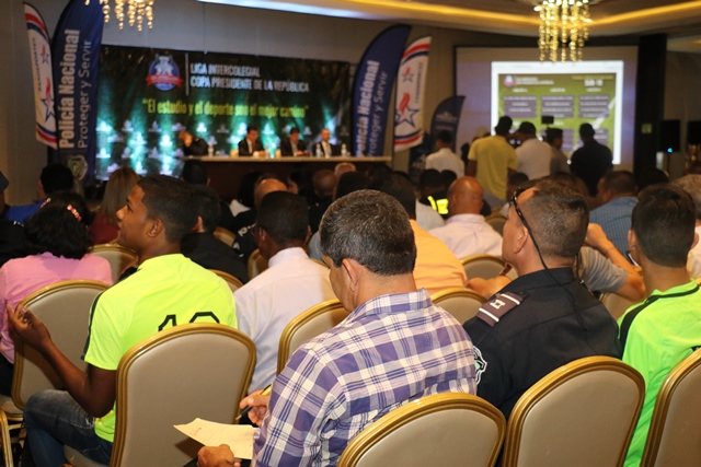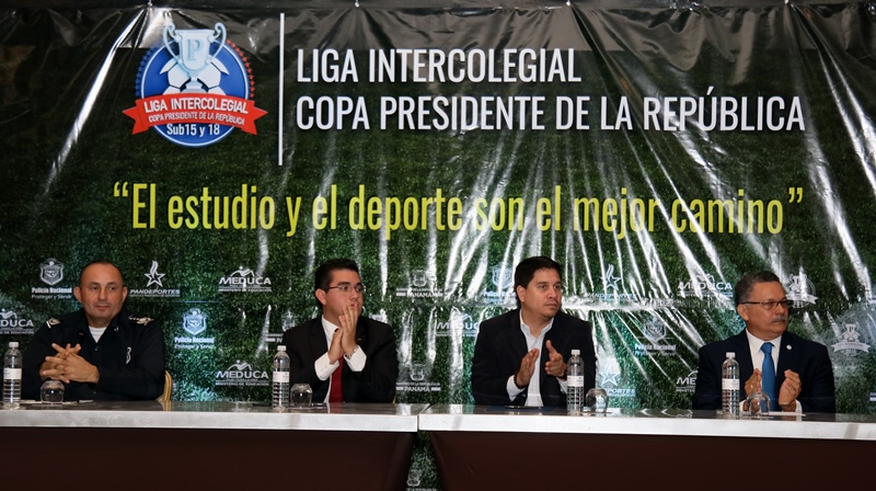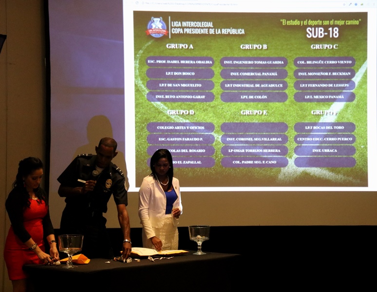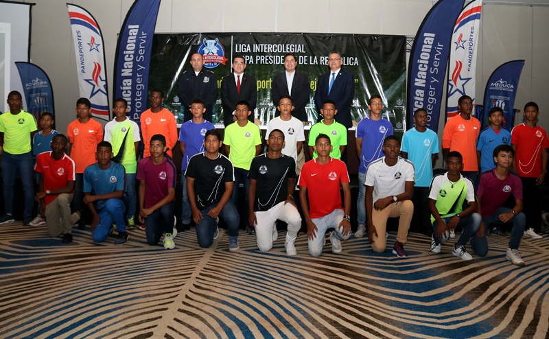 Panamá, 4 de septiembre de 2017. Bajo el lema “El estudio y el deporte son el mejor camino”, este lunes se hizo el lanzamiento oficial de la liga intercolegial de futbol Copa Presidente de la República, que por tercer año consecutivo agrupa a 44 planteles oficiales y particulares del país. “Esta actividad deportiva que agrupa a jóvenes de las categorías sub 15 y sub 18, redunda en beneficio del país en todos los sentidos; ya que se incentiva al estudiante a mejorar sus calificaciones y realizar deportes; además, promueve la sana convivencia entre los colegios participantes” aseguró el subdirector general de la Policía Nacional Alonso Vega Pino. El evento donde se estableció el calendario oficial de la tercera temporada, estuvo presidido por Ronald Campbell asistente del Presidente de la República Juan Carlos Varela, Mario Pérez, director general del Instituto Panameño de Deportes, Miguel Bazán, director general de Educación, así como de jóvenes estudiantes que lucieron sus nuevos uniformes y profesores. Este año jugarán en el torneo 48 equipos provenientes de 44 centros educativos, entre particulares y oficiales de todo el país; los ganadores de las categorías representarán a Panamá en la Copa Disney 2018 que se realiza en Orlando, Florida, Estados Unidos de América. En el 2016 Panamá obtuvo el campeonato en la categoría sub 18, mientras que el 2017 en ambas categorías se llevó el máximo galardón. El viernes 8 de septiembre a las 6:00pm en el estadio Rommel Fernández se inaugurará la liga intercolegial de futbol Copa Presidente de la República 2017. |
