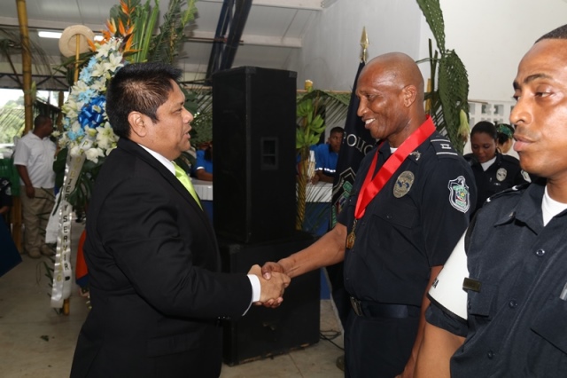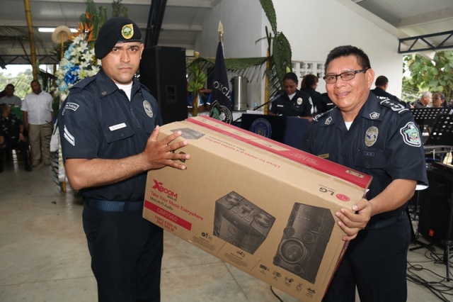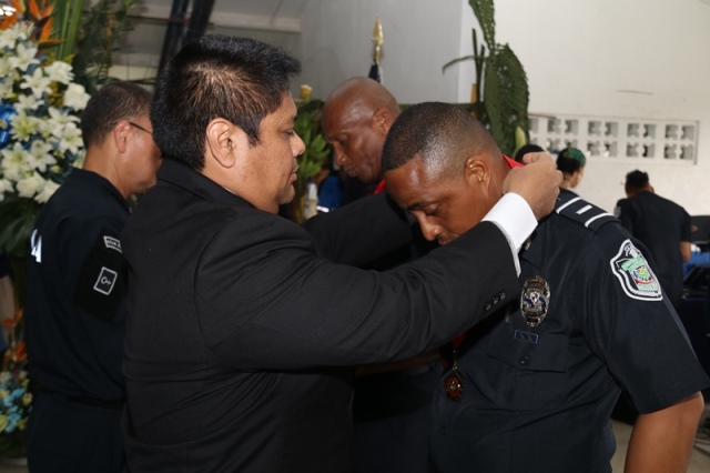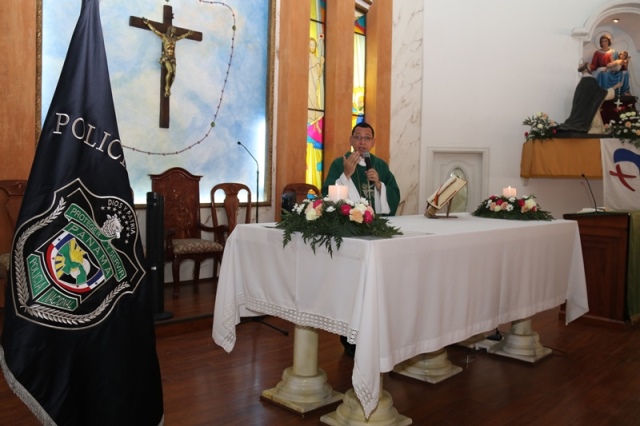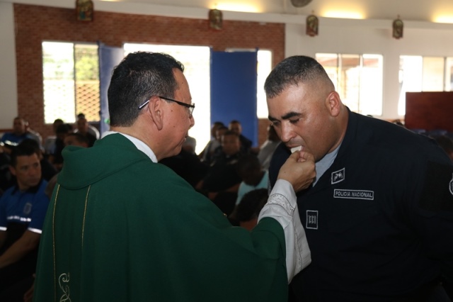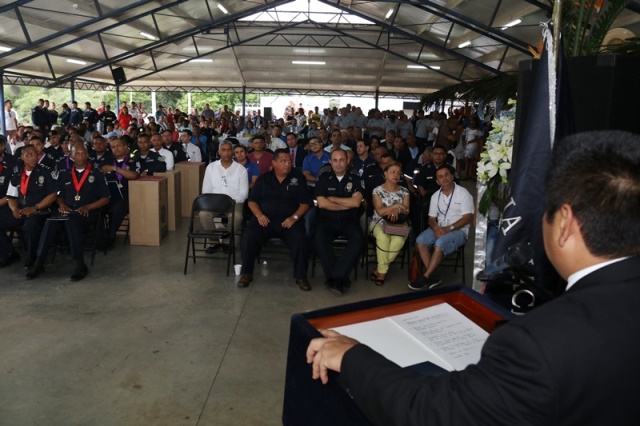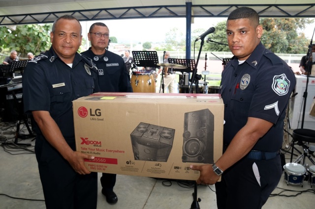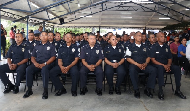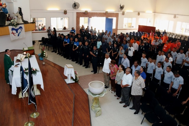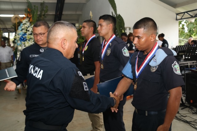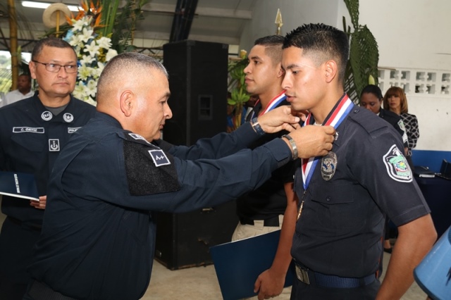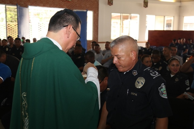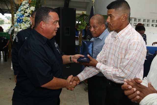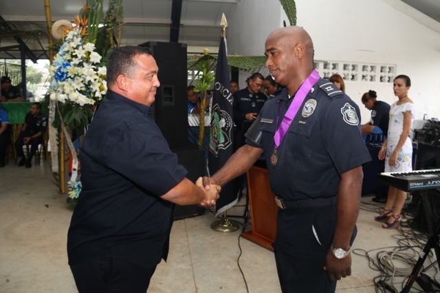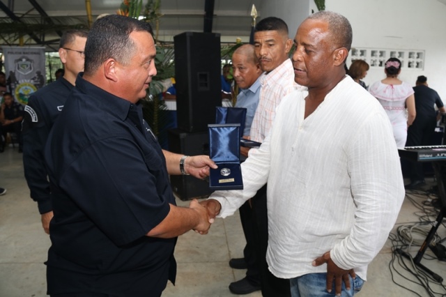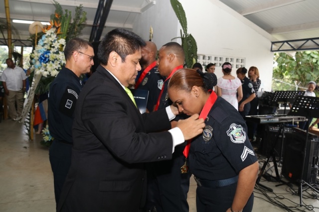 Veinte unidades policiales de servicio en la Zona Policial de San Miguelito recibieron de manos del Ministro de Seguridad Pública, Alexis Bethancourt Yau y del Director General de la Policía Nacional, Omar Ariel Pinzón Marín, “Medalla al Sacrificio”, “Medalla al Servicio Distinguido” y obsequios como reconocimiento al trabajo de estos hombres y mujeres policías. Para el Ministro de Seguridad Pública, Alexis Bethancourt Yau la labor de las unidades no solo se resalta cuando se está de aniversario, sino todos los días. “Hoy su esfuerzo, dedicación y entrega donde arriesgan su vida sin importar las circunstancias, donde la pasión por el trabajo, es el principal motivo para seguir en ardua labor, es recompensada”, puntualizó. Los actos conmemorativos a la fecha dieron inicio con las tradicionales dianas, competencias al aire libre, asados, presentaciones folclóricas, condecoraciones, y una misa de acción de gracia por el trabajo que hasta ahora han desarrollado para mantener la paz del distrito. La misa de acción de gracia se ofreció en la iglesia Nuestra Señora del Rosario, en Santa Marta, acto litúrgico que le permitió a miembros del Directorio, oficiales, clase, agente, Miembro No Juramentado, autoridades del distrito, y demás invitados especiales compartir la palabra de Dios. La ceremonia estuvo a cargo del Capellán de la Policía Nacional, Edgar Flores, quien resaltó el trabajo que realizan las unidades policiales e invitó a los presentes a seguir trabajando con ese mismo ímpetu que los caracteriza. En este acto por aniversario también estuvo presente el comisionado Alonso Vega Pino, Subdirector General y el jefe de la 11Ava. Zona Policial de San Miguelito, Comisionado Carlos Ortiz.