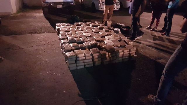En menos de 24 horas la Policía Nacional en conjunto con funcionarios de la Fiscalía Especializada en Delitos Relacionados con Drogas, lograron el decomiso de 468 paquetes de sustancias ilícitas y la aprehensión de 5 personas, en operativos desarrollados en Chiriquí, Veraguas, Coclé y La Chorrera. En el puesto de control de Guabalá provincia de Chiriquí, unidades de la 18ava zona policial Comarcal ubican 7 paquetes rectangulares de presunta sustancia ilícita que se mantenía en un bus de la ruta Panamá-Bocas del Toro. En tanto, a la altura del puente sobre el río Viguí en la provincia de Veraguas fue aprehendido un sujeto de 21 años quien mantenía en su poder 10 paquetes rectangulares de presunta sustancias ilícitas forrados con cinta adhesiva. Las acciones preventivas se trasladaron hasta el distrito de Antón provincia de Coclé, donde se ubicó en el maletero de un auto tipo sedán 47 paquetes rectangulares con presunta sustancias ilícitas. El auto era conducido por un hombre de 28 años de edad, en compañía de una mujer de 48 años. En La Chorrera en el sector de La Herradura, fueron aprehendidas una mujer de 49 años de edad junto a su hijo de 25 años, quienes ocultaban en la parte trasera de la residencia 8 sacos dentro de los cuales se encontraron 404 paquetes rectangulares con presunta droga. La Policía Nacional agradece a la ciudadanía seguir denunciando los hechos delictivos a través de nuestro Centro de Llamadas 104 o al número 512-2222. |