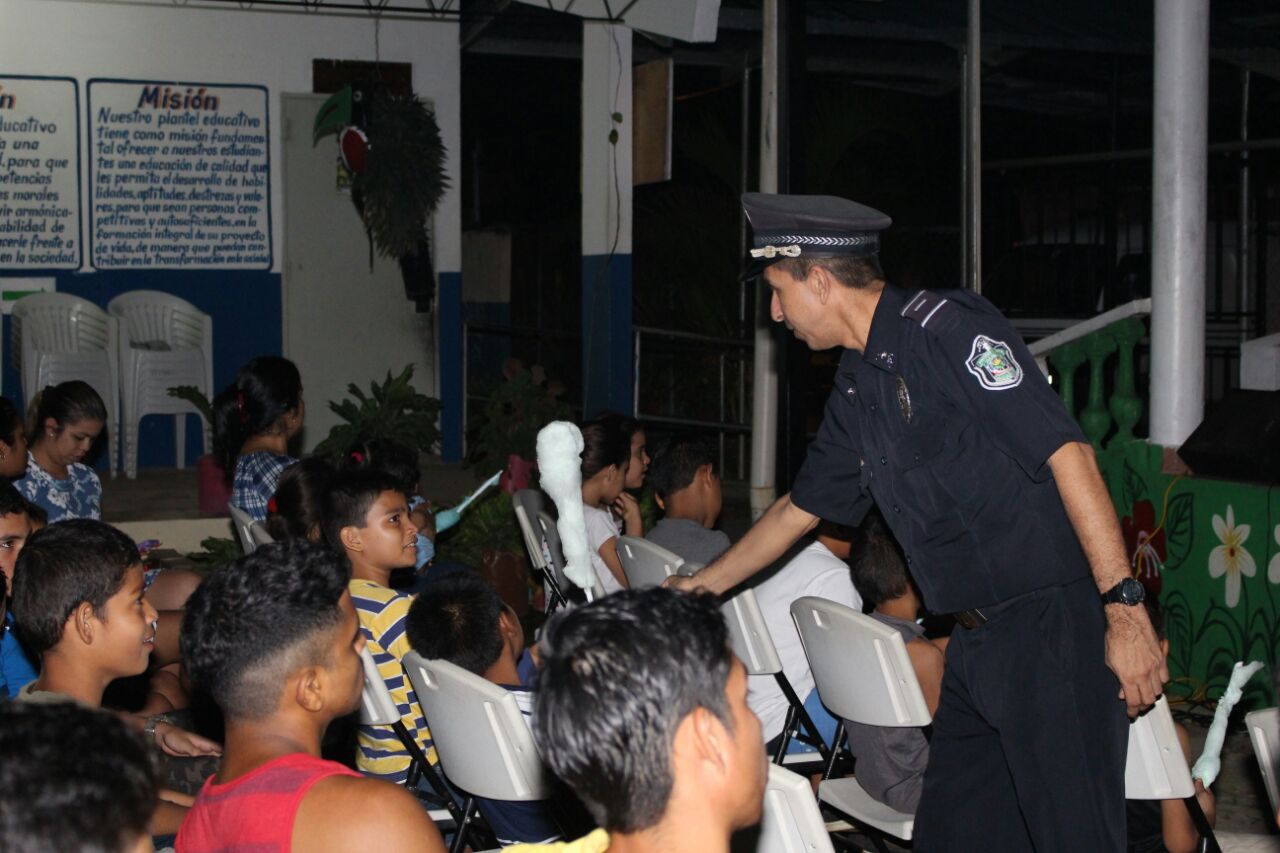 Unidades de la Policía Nacional de servicio en la Oficina de Seguridad Ciudadana de la Zona de Policía de Herrera llevo a niños y adolescentes del sector de El Limón de Chupampa de Santa María a disfrutar de una película instructiva y así brindarles un momento de esparcimiento en las vacaciones escolares. La actividad fue realizada en la Cancha de la escuela primaria de esa comunidad donde asistieron más de 80 niños, así como adulto padre de familias. La película tuvo una duración de 1 hora y 30 minutos, con un mensaje de coraje y de esfuerzo que debemos hacer para lograr nuestras metas. También se presentaron videos de medidas preventivas de educación vial, en caso de desastre y medidas preventivas personal antes de iniciar la película principal. De igual forma se aprovechó para brindar una docencia sobre los temas de valores y prevención de droga. En la actividad las unidades policiales repartieron golosinas y refresco para todos.