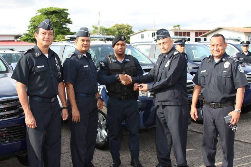 Un total de 60 vehículos serán distribuidos en las diferentes zonas policiales que están a lo largo y ancho del país, para reforzar los programas de seguridad ciudadana en la lucha frontal contra los hechos delictivos. Para el Director General de la Policía Nacional, Omar Ariel Pinzón Marín, esta nueva flota vehicular servirá para continuar con los programas preventivos que a diario se desarrollan de puerta en puerta. “Esta es una inversión que se hace para cumplir una de las metas trazadas en el plan estratégico Policía-Comunidad, que diseñó el señor Presidente Juan Carlos Varela, para seguir dando respuesta oportuna a la sociedad”, destacó Pinzón Marín al momento en que hacía la entrega formal de los vehículos ante la presencia del Subdirector General, Alonso Vega Pino y miembros del Directorio Policial. De acuerdo con el Jefe de la Institución garante de la seguridad en la República, los autos serán distribuidos en Chiriquí, Veraguas, Los Santos, Chepo, Arraiján, San Miguelito, Coclé, Pacora y Don Bosco. El Director General aprovechó para agradecerles a las comunidades por creer en su Institución, denunciar los hechos delictivos e integrar los diferentes programas preventivos que la Policía Nacional viene ejecutando en todo el país. |