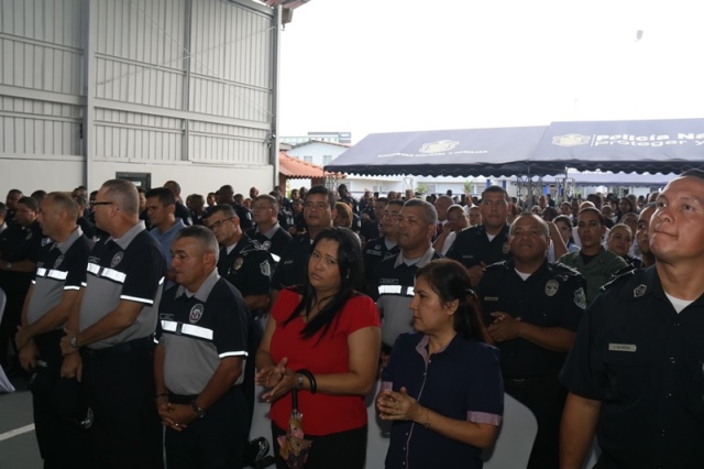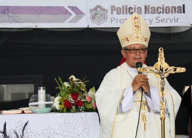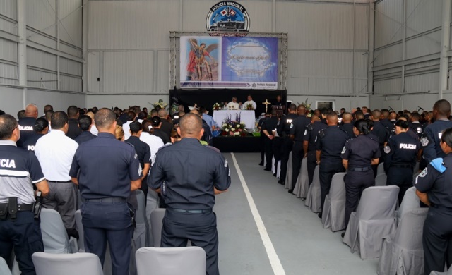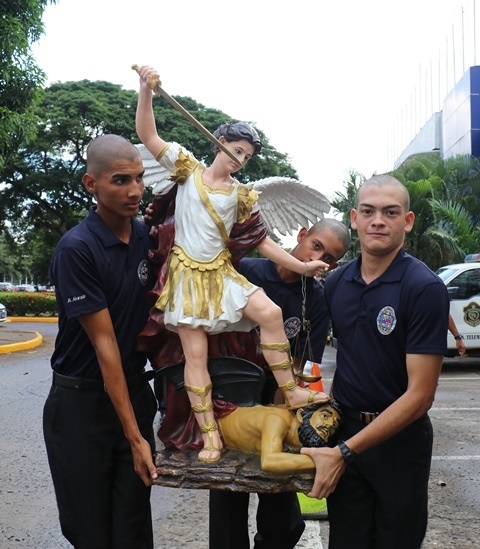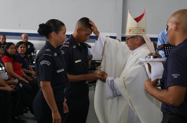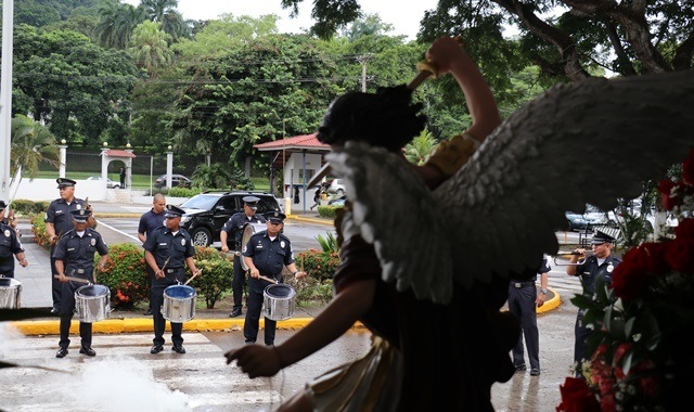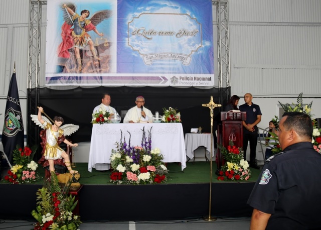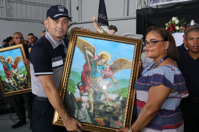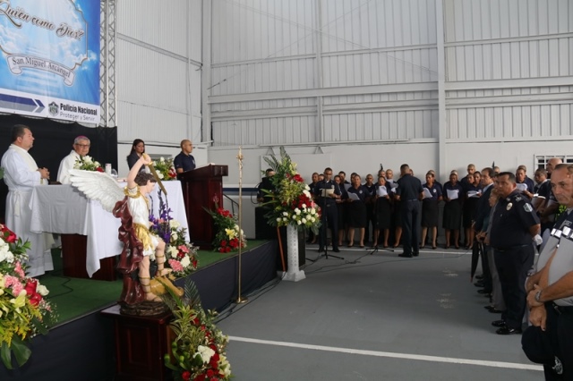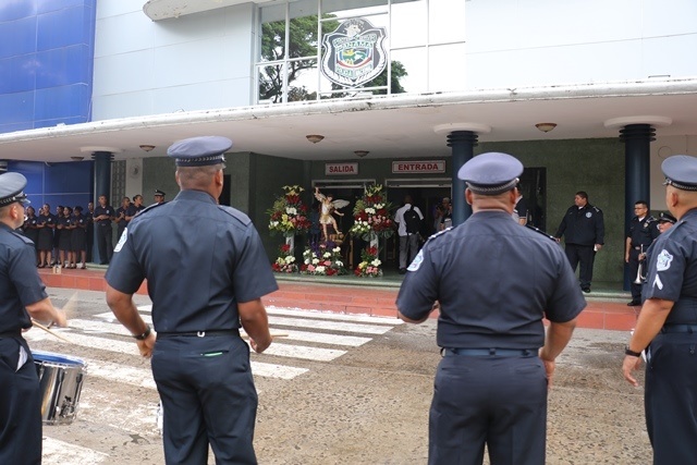 La Policía Nacional celebró con las tradicionales dianas y una misa la mañana de este viernes 29 de septiembre, el día en honor a su patrono San Miguel Arcángel,. La misa, fue presidida por Pedro Hernández Cantarero, Obispo del Vicariato Apostólico de Darién, quien felicitó a la familia policial por los actos en honor a su santo patrono San Miguel Arcángel. “Las unidades policiales siempre deben encomendarse a Dios antes de salir a cumplir con su misión” manifestó el Obispo Hernández Por su parte, el Director General de la Policía Nacional, Omar Ariel Pinzón Marín director de la PN, invitó a los uniformados a seguir trabajando y dar gracias a nuestro Señor que nos cuida y nos protege. “San Miguel Arcángel es un ángel protector y luchador contra el mal, y nosotros nos identificamos porque somos protectores contra el mal en la sociedad, por eso debemos dar gracias a Dios que nos permite esta bendición” destacó el jefe policial. En el transcurso de dicho acto religioso se entregaron canastillas, cuadros alusivos al santo patrono, y distinciones a unidades policiales que se han destacado por su mérito profesional y su constancia en el servicio.