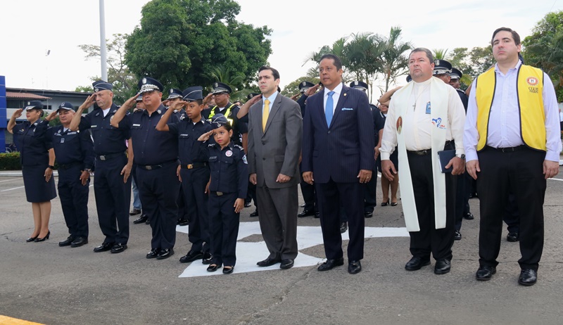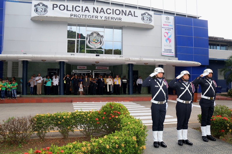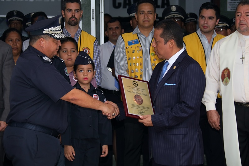 El Director General de la Policía Nacional, Omar Ariel Pinzón Marín recibió por parte del Gobernador de la Provincia de Panamá, Rafael Pino Pinto una placa de reconocimiento por su liderazgo y aportes en pro de la seguridad en el territorio nacional. El jefe policial agradeció este homenaje que se dio durante el acto cívico realizado en la sede de la institución en Ancón, a la vez que destacó el trabajo diario de los hombres y mujeres de uniforme que están al servicio del país. Durante la actividad estuvieron presentes como invitados especiales los niños símbolos de la Teletón 20-30 2017, Daniel Pinto y Joseliz Morales; además de los Campeones de Panamá Oeste, en la categoría pre-infantil del “Primer Torneo Internacional de Pony Baseball Zona Western”, organizado por la Policía Nacional. Posteriormente, el Viceministro de Seguridad Pública, Jonathan Del Rosario y el Gobernador Rafael Pino Pinto acompañaron a los miembros del directorio policial a colocar una ofrenda floral, en honor a los caídos en cumplimiento del deber.