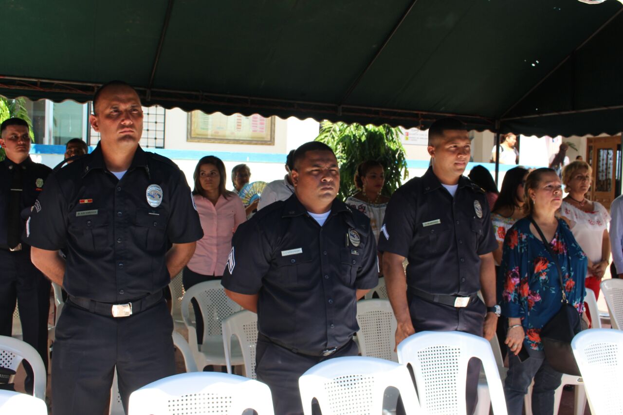 Unidades de la Policía Nacional de servicio en la Zona de Policía de Herrera participaron en el acto de ceremonia de incineración de Bandera Nacional en desuso, realizado en el Colegio José Daniel Crespo. En el acto estuvo presente el comisionado Urracá De La Hoz, autoridades de la provincia, la banda del colegio y ciudadanos sobresalientes del distrito de Chitré. Cabe señalar que esta es la primera cremación de banderas que se realiza en este plantel educativo donde estuvo la presencia de la policía nacional como parte del protocolo en tan significativo acto de símbolos patios. La Policía Nacional continuaran participando en todos los actos donde se les rinde honor a los símbolos patrios de nuestro País. |
