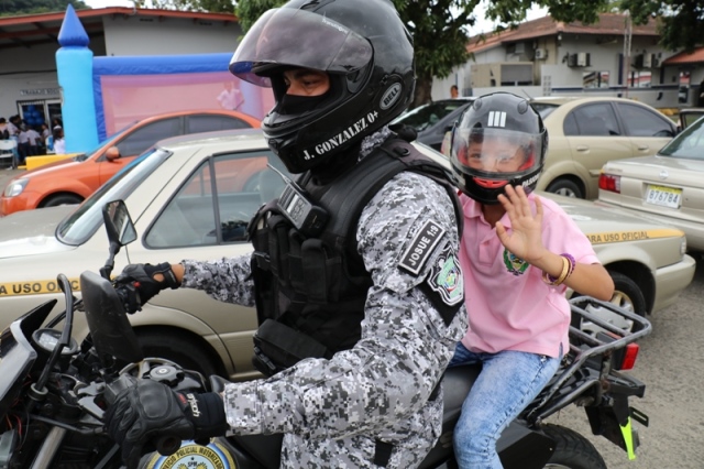 Dieciocho niños y niñas de segundo grado del Centro Educativo Básico General Llano Marín de la provincia de Coclé, visitaron por primera vez las instalaciones de la sede policial en Ancón este jueves 16 de noviembre. Los pequeños recorrieron las instalaciones de la institución donde los esperaban muchas sorpresas como brinca brinca, golosinas, pinta caritas, el show de la Unidad Canina y un divertido paseo en moto por parte de las unidades Linces. Luego de esta visita los niños hicieron un recorrido por Panamá La Vieja y El Casco Antiguo en compañía de unidades de la Policía de Turismo que se encargaron de educar sobre la historia de nuestro país. “Nos sentimos muy agradecidos por la atención que nos han brindado, el aporte de las unidades policiales para que esta actividad fuera tan bonita y principalmente el conocimiento brindado a niños que pertenecen a las Aldeas SOS” expresó Arelys Franco, Maestra de la escuela. Esta gira educativa organizada por el centro educativo, se realizó con el fin de conocer más a fondo la labor que realiza la Policía Nacional a su vez inculcar los buenos valores, admiración y respeto por la labor policial.