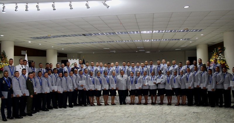 “Hoy reciben un grado muy importante producto de un esfuerzo consolidado, un cambio que inicia desde este momento, dentro de su preparación nos hemos preocupado por formar carácter, porque con sabiduría sabrán afrontar los problemas sociales para darle respuesta a la nación" fueron las palabras del Director General Omar Ariel Pinzón Marín, durante la ceremonia de graduación de Licenciatura en Admistración Policial de la promoción 17 de la Escuela de Oficiales Doctor Justo Arosemena. “La integridad, vocación, ser ejemplos y no caer en actos de corrupción son sus principales armas” apunto el Jefe Policial ante los graduandos. Con orgullo los Subtenientes recibieron el diploma que los acredita como idóneos en de Administración Policial, acto realizado en el Paraninfo de la Universidad de Panamá. El rector de la Universidad de Panamá, Eduardo Flores Castro reiteró a los oficiales el compromiso adquirido, que sirvan con responsabilidad y amor a su institución y a la Patria. Los tres primeros puestos de honor ocupados por: 1° Subteniente Kevin Earl Ardines, 2° Alexander Apolayo y 3° Gabriel Ángel Mojica, recibieron por parte de la Universidad de Panamá, un presente y pergamino de reconocimiento especial. En esta promoción bautizada con el nombre del Coronel Tomás Arguelles, se formaron también, dos oficiales del Servicio de Protección Institucional, tres del Servicio Nacional de Fronteras, y cuatro del Servicio Nacional Aeronaval. Además dos egresados de la Academia de Cadetes Mayor General José Félix Rafael Hermidas González Policía Nacional de República Dominicana. En el acto participaron el Rector de la Universidad de Panamá, Eduardo Flores; el Decano de la Facultad de Administración Pública, Magister Fidel Palacios; el Director de la Escuela de Administración Policial, Magister Abraham Magallón; el Subdirector de la Policía Nacional, Alonso Vega Pino; El Comisionado Jorge Luis Escobar, Director Nacional de Docencia de la Policía Nacional, representantes de los estamentos de seguridad, así como de miembros del Directorio Policial y familiares de los graduandos.