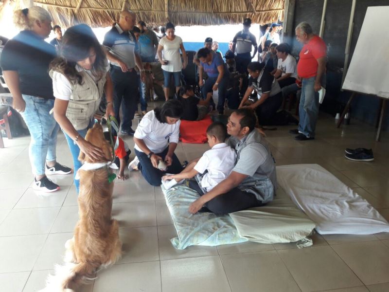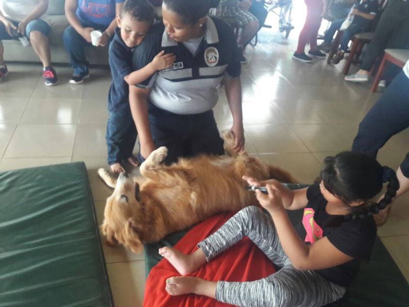 Canes de la Unidad Canina (UCAN) de la Policía Nacional junto a sus entrenadores brindan Terapia Asistida con Perros a niños con algún tipo de padecimiento como parálisis cerebral, Síndrome de Down, autismo u alteraciones sensoriales, como la pérdida visual o auditiva. Las unidades de la UCAN iniciaron este servicio junto a personal de la Fundación Colitas, primera organización que introduce al país la zooterapia para mejorar la calidad de vida de niños y adolescentes. El jefe de la Unidad Canina, Mayor Mario Chan dijo que se trata de un proyecto al que incursiona la Policía Nacional, como parte de la política de Inclusión Social de las personas con discapacidad y busca apoyar a hijos de los miembros de la institución y a familias de escasos recursos que ven positiva esta alternativa, y es que se han observado avances significativos a través de la Terapia Asistida con Animales, en este caso con perros. Chan agregó que otro aspecto positivo, es que los canes que forman parte del proyecto son perros de razas específicas como el labrador o Golden retriever, que culminaron su servicio activo en la UCAN y ahora en su tiempo libre siguen demostrando lo mucho que pueden ayudar. |