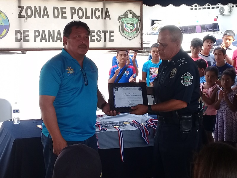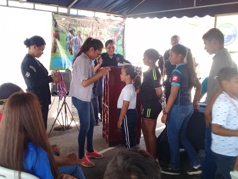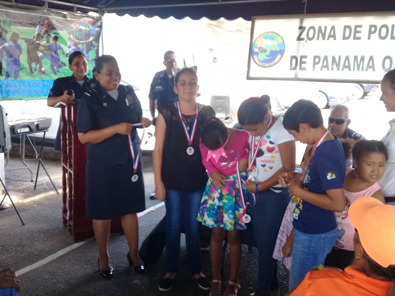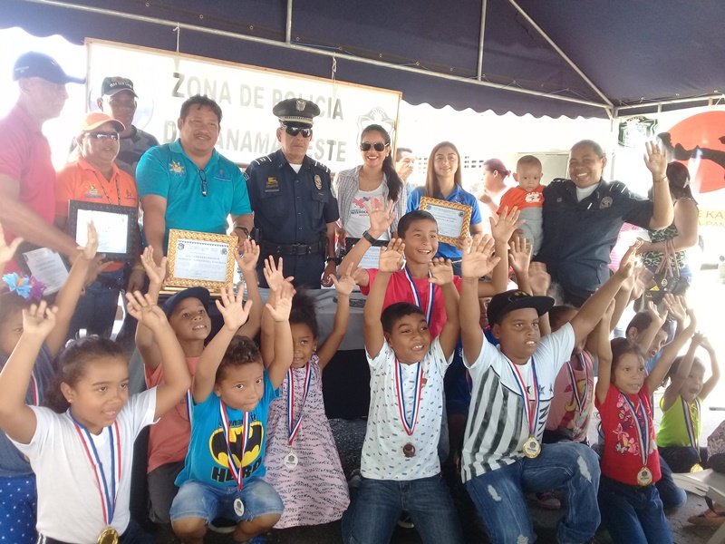 Con un significativo acto se realizó la clausura del programa “Verano Feliz“ en las instalaciones de la 10. Zona Policial Panamá Oeste. En esta actividad participaron los hijos de las unidades y de integrantes de los diferentes programas que desarrolla Seguridad ciudadana. Entre las disciplinas que se desenvolvieron podemos mencionar fútbol. Voleybol, baloncesto, karate, yudo y esgrima. Todos los niños(as) recibieron medallas por su participación y reconocimientos especiales. El Comisionado Víctor A. Olmedo, jefe de la Zona al hacer uso de la palabra reconoció y felicito a los padres de familia presentes, por su dedicación y esfuerzo por mantener a los niños en actividades donde no solamente hagan deporte sino que se le inculquen valores como el respeto, disciplina, responsabilidad entre otros.