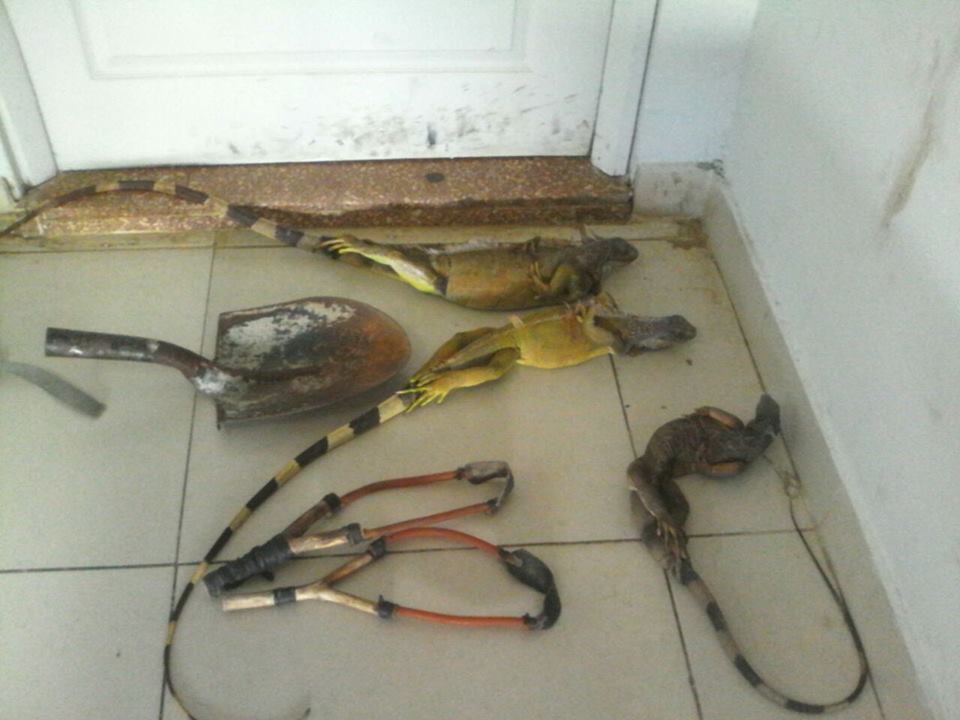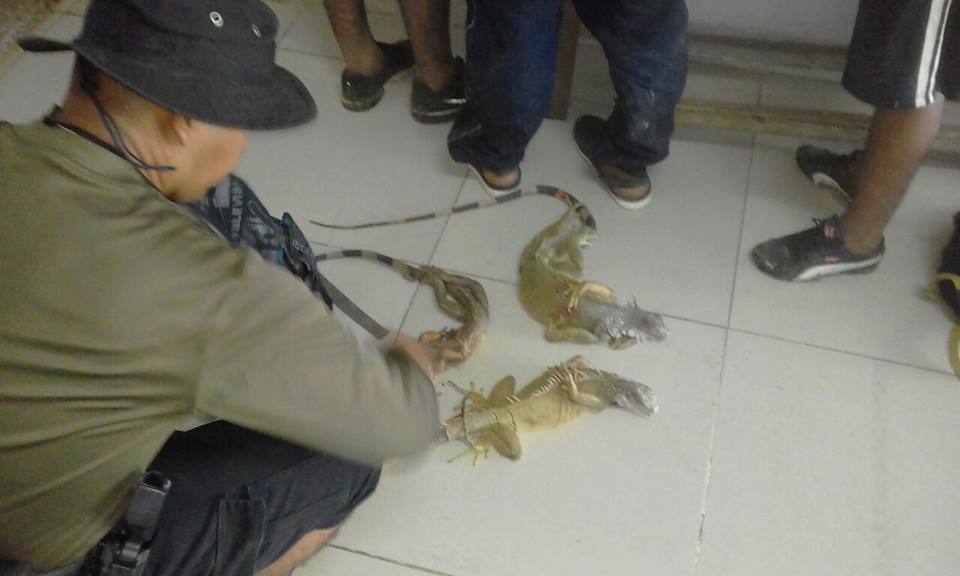 Unidades de la Policía Nacional de servicio en la Policía Ecológica, aprehendieron en Veracruz a tres personas dedicadas a la caza de iguanas y fueron puestas a órdenes de las autoridades competentes, debido a que la caza de este reptil está prohibida en nuestro país. Principalmente en esta temporada donde muchas de estas especies, se reproducen o cambian de hábitat; es por ello, nuestro compromiso de neutraliza el accionar de estos cazadores. La aprehensión se realizó la mañana de este lunes 19 de febrero de 2018. Por otro lado, durante el fin de semana, unidades de la Policía Ecológica rescataron a un perezoso en el área de Balboa y fue entregado a la Asociación Panamericana para la Conservación del Medio Ambiente. La Policía Nacional de Panamá, continuará comprometida con el cuidado y conservación del medio ambiente y les invitamos a denunciar a través de la línea 104 |