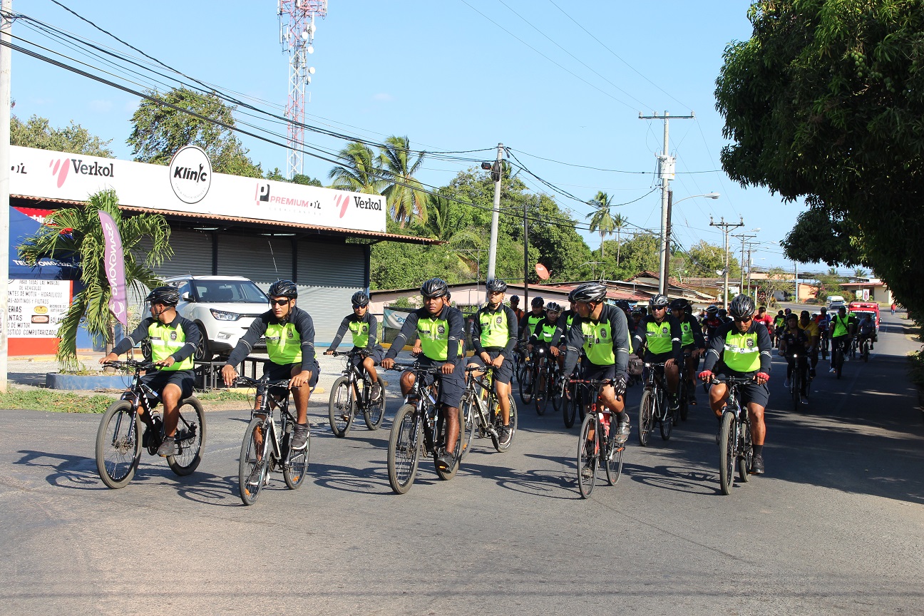 POLICÍA DE HERRERA Y MIEMBROS DE LA COMUNIDAD RECORREN LAS CALLES DE CHITRÉ EN UN PASEO CICLÍSTICO
