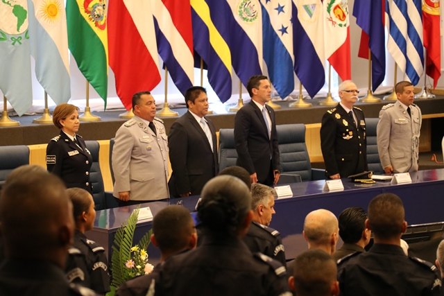 “Para nosotros, es un alto honor recibirlos en nuestra casa, con respeto pero a la vez con cordial fraternidad, consciente de que avanzamos por un camino común, noble que lleva a la paz y seguridad ciudadana” fueron las palabras del Director General de la Policía Nacional Omar Ariel Pinzón Marín en la inauguración de la “IV Reunión del Consejo de Administración de la Escuela Iberoamericana de Policía” (IBERPOL), que se llevó a cabo en el Parlamento Centroamericano, en Amador. Durante la ceremonia protocolar, Panamá fue designada como sede permanente del "Centro de Perfeccionamiento de la IBERPOL para los países de Iberoamérica”, para la realización de cursos presenciales. Además, el Comisionado Jorge Luis Escobar, Director Nacional de Docencia de la Policía Nacional recibió formalmente de manos de la Comisaria Jefa Dra. Laura Carrera Lugo de la Policía Federal de México, la Presidencia del Consejo de Administración Policial 2018-2019. En el acto inaugural estuvo presente el Ministro de Seguridad Pública, Alexis Bethancourt Yau, quien agradeció a los representantes de IBERPOL, por este evento trascendental para la seguridad de los países del hemisferio. Mientras que el Vice Ministro de Relaciones Exteriores de Panamá, Luis Miguel Hincapié, destacó que es necesario dotar a los estamentos de seguridad con herramientas para la lucha contra el crimen organizado transnacional y este tipo de cooperación es fundamental. La IV Reunión del Consejo de Administración de la Escuela Iberoamericana de Policía” (IBERPOL) se llevará a cabo en Panamá desde este miércoles 21 al viernes 23 de julio y cuenta con la participación de 16 representantes de Europa, Norte, Centro, Suramérica y el Caribe. De 2016 a 2017 IBERPOL ha capacitado 1,221 policías de instituciones policiales de Iberoamérica, en 24 cursos, 4 de ellos realizados en Panamá. Tiene como objetivos fomentar capacitación continua e integral en materia de seguridad, mediante el intercambio de experiencias, buenas prácticas y conocimiento tecnológico. Igualmente, desarrollar una red de Capacitación entre Escuelas Nacionales de Policía, para generar y compartir conocimiento policial en los ámbitos relacionados a la prevención y persecución de delitos, y al mantenimiento de la seguridad ciudadana y el orden público. Unas 26 instituciones policiales de 18 países de Europa, Norte, Centro, Suramérica y el Caribe, hacen parte de la Escuela Iberoamericana de Policía (IBERPOL) |