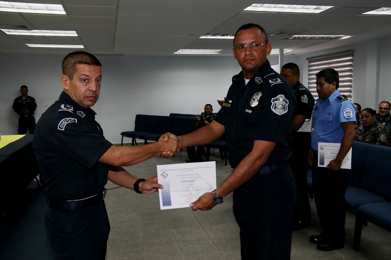 Con éxito y un ambiente de confraternidad, culminó el IV “CURSO DE FORMACIÓN EN PROCESOS DE SELECCIÓN PARA CUERPOS POLICIALES” en el auditorio de la Escuela de Oficiales de Policía, Dr. Justo Arosemena, de la Policía Nacional de Panamá. “Agradezco a la Policía Nacional de Panamá por haber hecho posible la realización de este curso, contar con la presencia de nueve países nos dice la importancia que tienen las sociedades modernas en la entrega de mejores resultados para la puesta en común de nuestros modelos formativos y la selección de personal” destacó Mariano Fernández Prieto, Inspector de la Policía de España y profesor del área de relaciones. Fueron veinte tres oficiales de países tales como: Salvador, Nicaragua, Guatemala, Ecuador, Argentina, Chile, Andorra, México y Panamá; recibieron su certificado de participación por haber culminado satisfactoriamente los nueves módulos dictados por la Policía Nacional de España, desde el 19 hasta el 23 de marzo de 2018. En el marco de la oferta formativa para este año 2018 de la escuela iberoamericana de policía-iberpol. Cabe resaltar, que en este curso se abarcaron módulos de suma importancia como: El Modelo Policial Español, El papel del psicólogo en los procesos de selección, la selección en la promoción del cuerpo nacional de policía; así como también Técnicas y criterios de selección. Al finalizar el acto protocolar, los oficiales de extranjeros manifestaron su agradecimiento a los docentes españoles y la Policía Nacional de Panamá por la hospitalidad recibida en Panamá. En la mesa principal de esta ceremonia de clausura estuvo el Comisionado y Director de Nacional de Docencia de la Policía Nacional, Jorge Luis Escobar, el Inspector de la Policía de España y profesor del área de relaciones, Mariano Fernández Prieto, la Inspectora Rosalinda Rodríguez González de la Policia de España; así como también, el capellán Arcia de la 3 Zona Policial de Colón. Para la Policía Nacional y los países que conforman IBERPOL, la selección de cuerpos policiales, constituye un pilar fundamental para un mejor servicio a la nación y el reforzamiento en la estructura policial. |