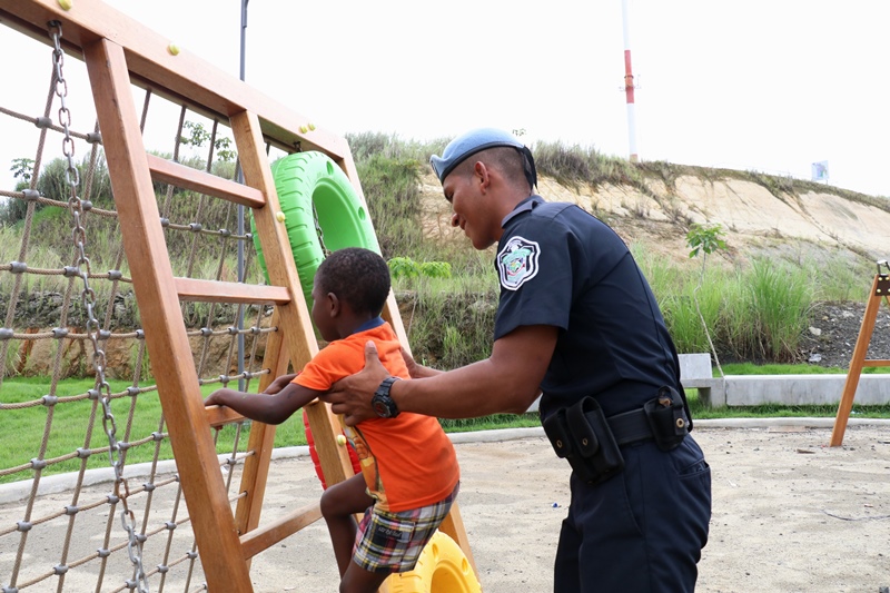 Unidades de la Policía Nacional participaron en la II Feria Interinstitucional Colón 2018, organizada por la el Ministerio de Seguridad Pública (MINSEG), en el proyecto Renovación Alto de Los Lagos, con la finalidad de tener un acercamiento con la comunidad y preservar la convivencia ciudadana. La participación se dio a través de un stand donde el personal de Seguridad Ciudadana, al igual que la Unidad Preventiva Comunitaria compartieron con los niños dando charlas, pintando las caritas, con los brinca brincas y con refrigerios. En la actividad también estuvo el grupo canino, Polita y Polito, la orquesta de la Policía Nacional, quien amenizó en la tarima principal. La feria fue inaugurada por el Ministro de Seguridad Pública, Alexis Bethancourt, también estuvo presente el comisionado Benjamín Sambrano, el comisionado Roger Rodriguez y el comisionado Luis Ortiz encargado de la Upc en el residencial Altos de Los Lagos. |