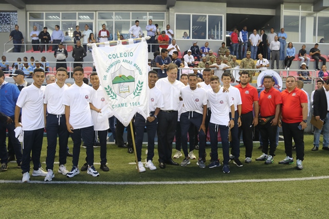 El mandatario Juan Carlos Varela inauguró en el Estadio Maracaná, El Chorrillo, la cuarta versión del Torneo Intercolegial de Fútbol “Copa Presidente de la República”, en el que participan 48 equipos en las categorías sub-15 y sub-18. “Ha sido para mí un honor llevar este torneo desde el año 2015 cuando se creó para enriquecer la vida del estudiante mediante el deporte. En estos cuatro años hemos comprobado que el estudio y el deporte son el mejor camino”, destacó el Presidente. La Copa Presidente es producto de una coordinación interinstitucional de la Policía Nacional, MEDUCA y Pandeportes, siguiendo los lineamientos del Plan de Gobierno de Convivencia Pacífica, que busca la confraternidad de los jóvenes a través de una actividad sana. El jefe del Ejecutivo consideró que este evento deportivo intercolegial se ha convertido en uno de los más esperados, pues trae consigo ventajas y beneficios para los estudiantes y para sus familias, que los acompañan durante todo el torneo. Instó a los jóvenes a transmitir en la sociedad todos los valores que aquí obtienen: la disciplina, el respeto, el trabajo en equipo y la puntualidad y les aseguró que estos juegos contribuirán a su formación personal, fortalecerán su carácter, su espíritu de grupo, su disciplina y también su desarrollo físico. “Todo esto forma un excelente estudiante, y un gran profesional para el futuro”. El juego inaugural se lo disputaron la Escuela Profesional Isabel Herrera de Obaldía y el colegio El Zapallal. Los partidos, que se extenderán hasta el 1 de noviembre, se jugarán en cinco estadios del país: Bugaba, en la provincia de Chiriquí; Los Milagros, en la provincia de Herrera; Agustín ‘Muquita’ Sánchez, en la provincia de Panamá Oeste, Maracaná y Luis Ernesto ‘Cascarita’ Tapia en la ciudad capital.