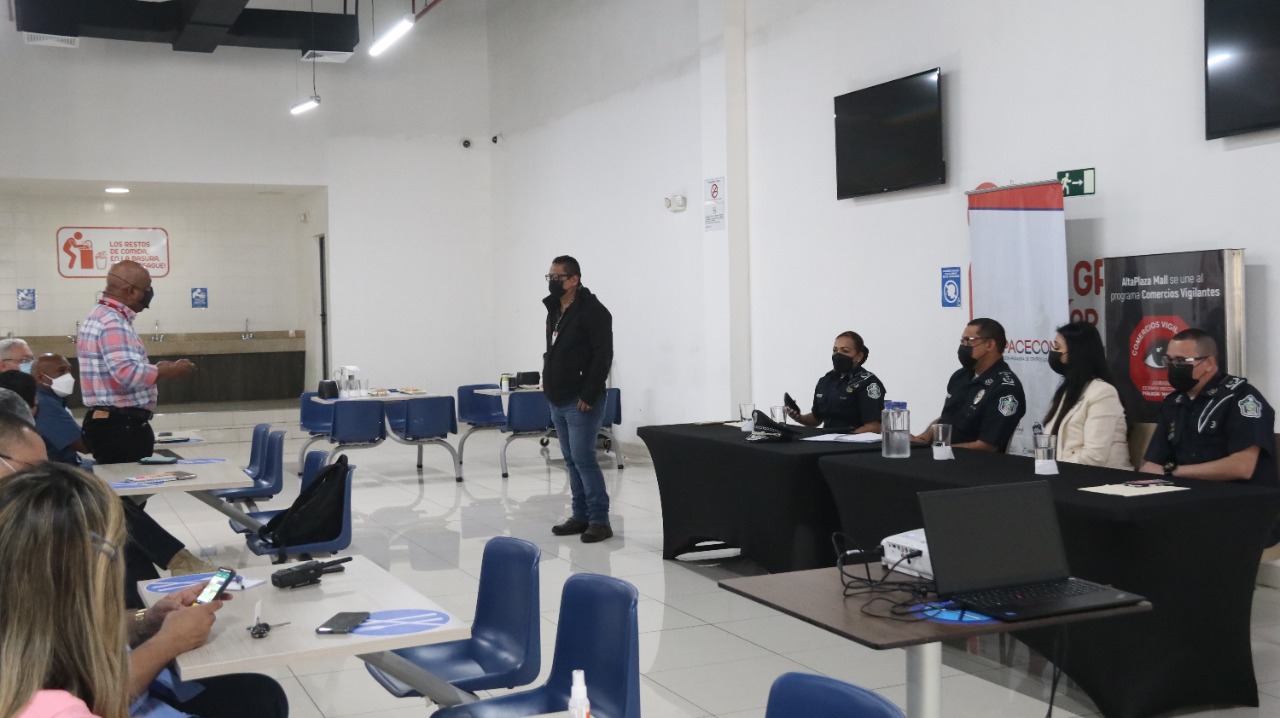 El Director General de la Policía Nacional, Jonh Dornheim junto al Subdirector General, Simón Henríquez se reunieron con gerentes y jefes de seguridad de los centros comerciales, en Alta Plaza Mall con el objetivo de fortalecer las acciones y la alianza estratégica de seguridad.