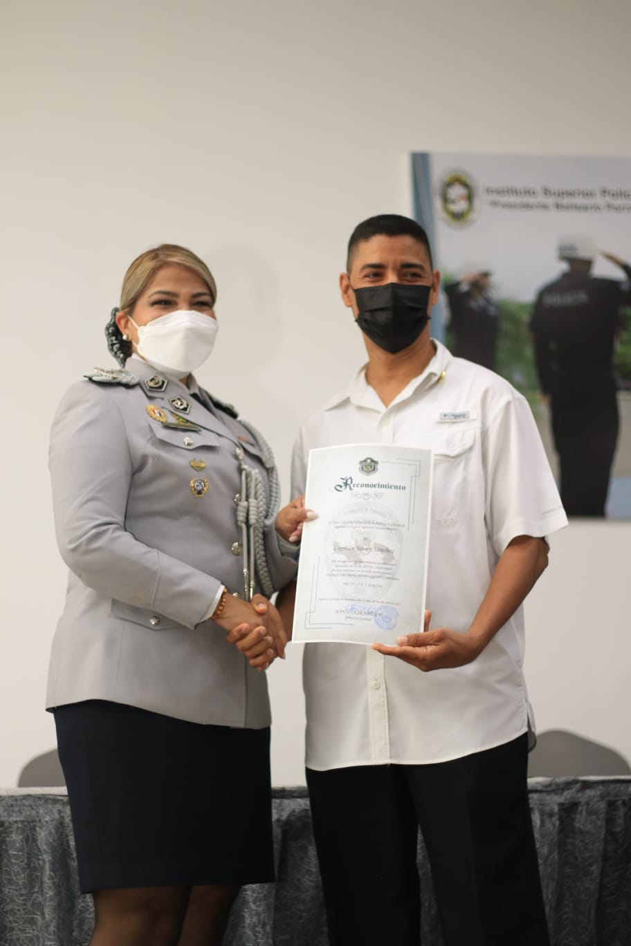 La vida consagrada al servicio de la Patria que dedicaron oficiales en retiro, al culminar sus 30 años de labores en la Policía Nacional, fue enaltecida con una ceremonia de reconocimiento, realizada en el auditorio del Instituto Superior Policial (ISPOL). Se trata de las promociones de capitanes, de 1988, 1989 y 1991, quienes fueron pioneros en la transformación institucional en un proceso de transición histórica, que llevo a la creación de la nueva Policía Nacional. El Director General, John Dornheim, junto al Subdirector General, Simón Henríquez y miembros del Directorio Policial le hicieron entrega a los oficiales, de los merecidos certificados de reconocimiento. “Para mí es un honor agradecerles por ser ejemplo del buen policía. Hoy culminan una etapa con honra y por la puerta ancha, siempre serán bienvenidos en la institución. Misión cumplida”. Por su parte, la capitán Dora Zurita, en representación de sus compañeros de promoción agradeció por este reconocimiento, destacando que jamás dejarán de ser policías, porque fue la profesión que amaron, con los momentos difíciles y aquellos memorables. La ceremonia, que representó un acto simbólico a la trayectoria profesional de estos hombres y mujeres, que demostraron su vocación, compromiso y lealtad, contó con la presencia de sus familiares, a quienes el Director General Dornheim agradeció por su respaldo. Se dedicó un minuto de silencio, por aquellos oficiales que ya partieron a su encuentro con Dios. Jefes de zona y servicios policiales, también estuvieron presentes, en este homenaje, a quienes en su momento fueron sus tácticos y compañeros.