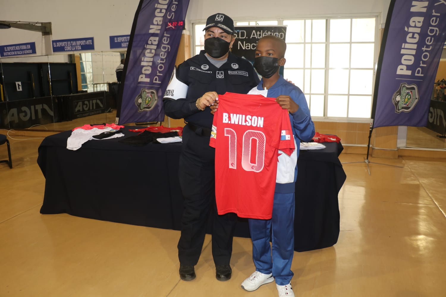 El equipo campeón de la Copa Las Estrellas de Colón, fueron recibidos por el Subdirector General de la Policía Nacional, Simón Henríquez en la ceremonia de entrega de uniformes a los 11 niños integrantes de este equipo de fútbol, quienes agradecieron a la Policía Nacional por su gran apoyo en estas competencias deportivas. Los fútbolistas del Barrio Norte del distrito de Colón, son los campeones de la categoría U 11 y representativos del Torneo Copa Estrellas de Colón, el cual se organizó con los seis distritos de la provincia, donde participaron unos 1,492 niños y niñas. Los deportistas participarán en el convivio internacional que se realizará en conjunto con el grupo del Club San Carlos de la primera división del fútbol Costa Rica, ubicado en San Carlos, provincia de Alajuela, Costa Rica. |