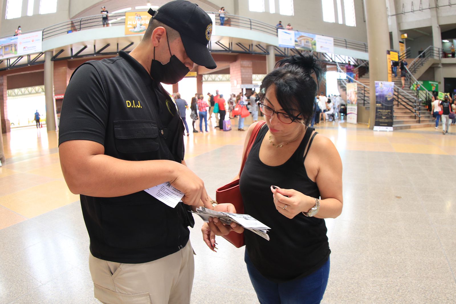Con la finalidad de informar y crear conciencia en la ciudadanía sobre el delito de Trata de Personas la Policía Nacional a través de la Dirección Investigación Judicial realizó este sábado 30 de julio, Día Mundial Contra la Trata de personas, un volanteo en la Gran terminal de transporte en Albrook.