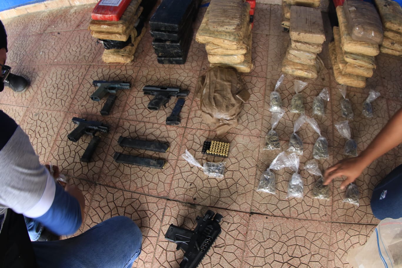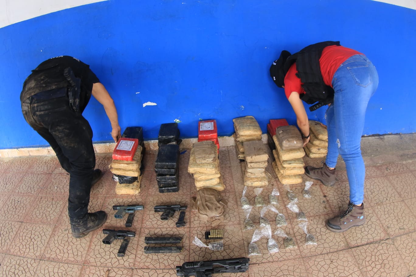 El hallazgo se da en un área boscosa en el sector de La Promesa, donde los uniformados logra ubicar enterrado un tanque metal el cual mantenía en su interior los paquetes rectangulares de color negro forrados con papel plástico trasparente, además 3 armas de fuego, tipo Glock con 5 proveedores y municiones.