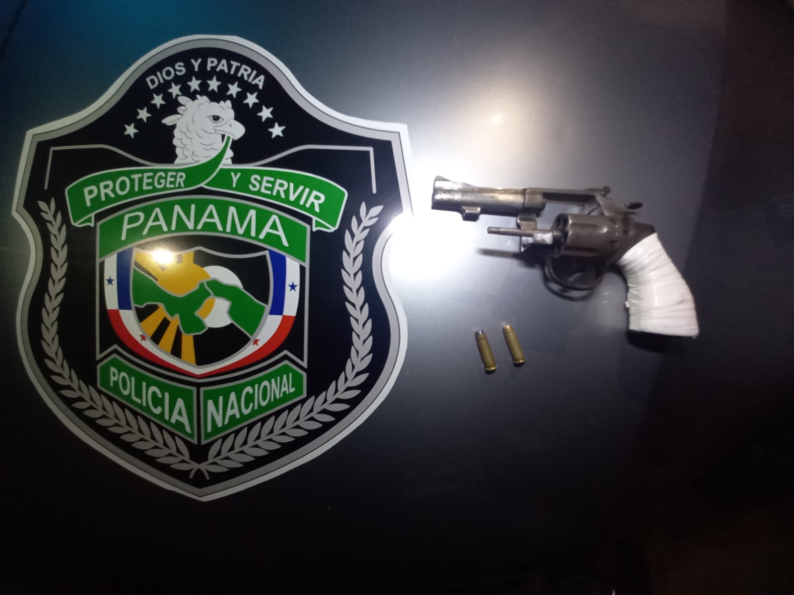 Unidades policiales mediante recorrido preventivo en el sector de Villa María, corregimiento de Ernesto Córdoba Campos, recuperan un arma de fuego tipo revólver calibre 38.