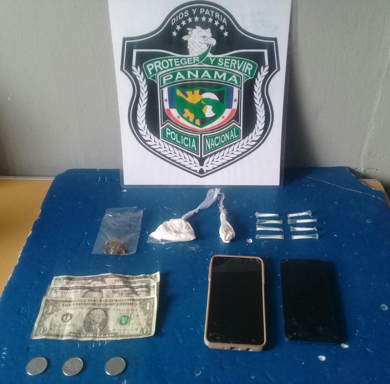 Entre los indicios decomisados a los aprehendidos están un sobre con presunta sustancia ilícita, ocho pedazos de carrizos transparentes que contienen cierta cantidad de polvo que se presume sea droga, además de dos bolsas de regular tamaño que contienen polvo blanco y B/.11.75 en efectivo.