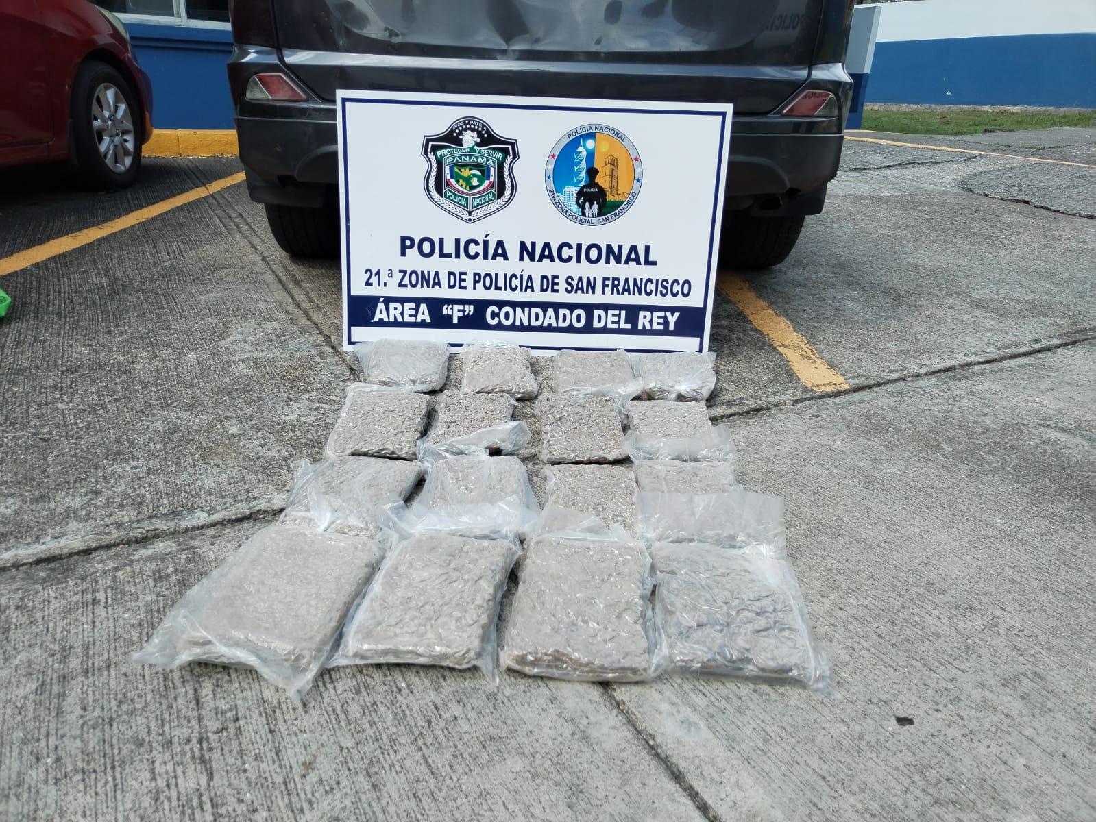 El Subcomisionado Jaime Toledo, jefe de la Zona Policial de San Francisco, dijo que los tres ciudadanos viajaban a bordo de un vehículo color negro y al ser verificado por los uniformados, ubican en el interior del maletero dos bolsas reutilizables con los 16 paquetes con presunta sustancia ilícita (hierba seca).