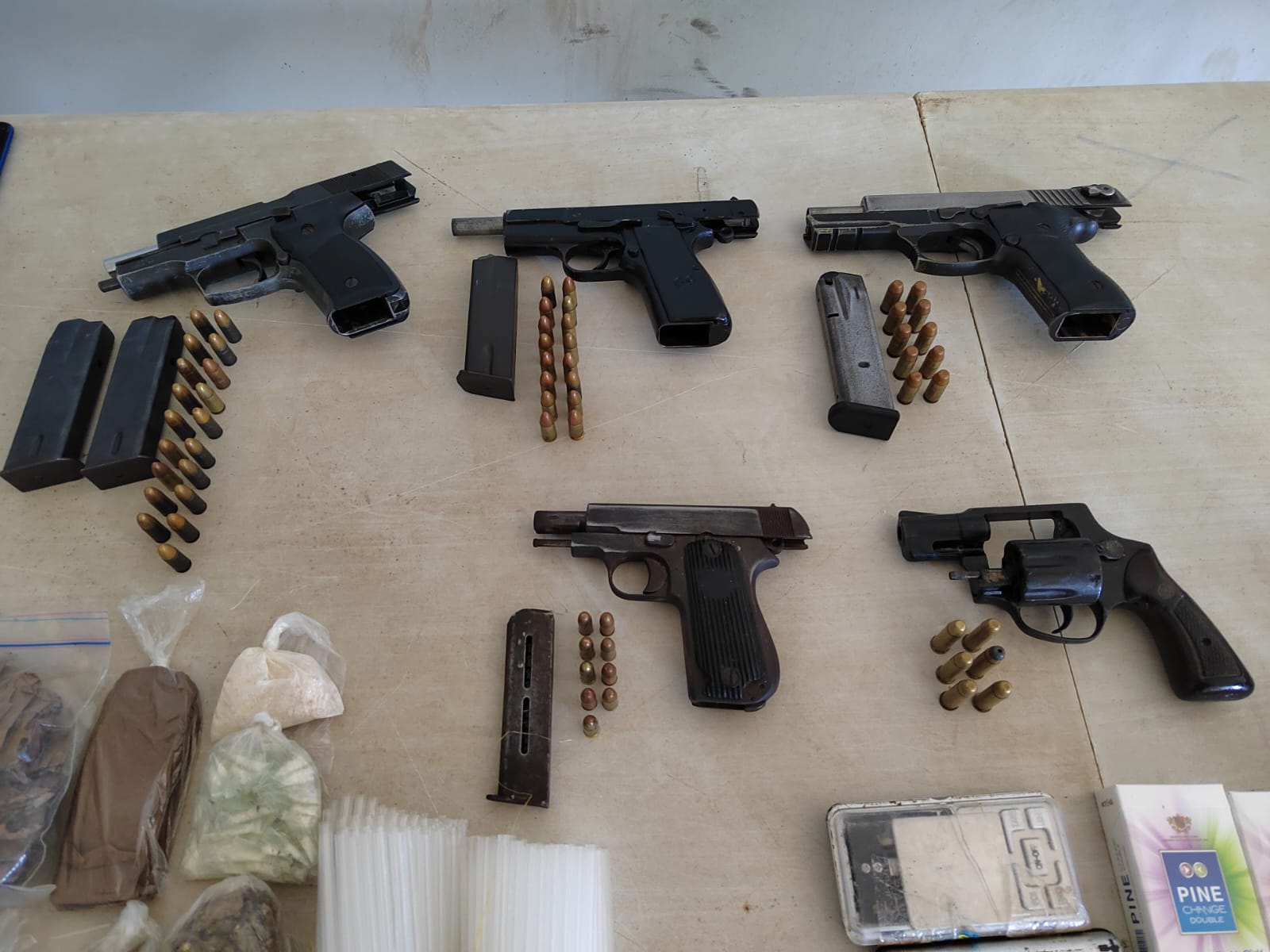 La Policía Nacional en coordinación con la Dirección General del Sistema Penitenciario, decomisó 5 armas de fuego, celulares y varios carrizos con presunta sustancia ilícita, mediante una requisa de la Operación Armagedón en el Centro Penitenciario La Nueva Joya. El Comisionado Luis García, Jefe del Servicio de la Policía Penitenciaria indicó que esta diligencia se desarrolló en el sector A, ubicándose los siguientes artículos: Con estas acciones se busca garantizar un ambiente de paz en los centros carcelarios, la seguridad de los privados de libertad y personal administrativo. |