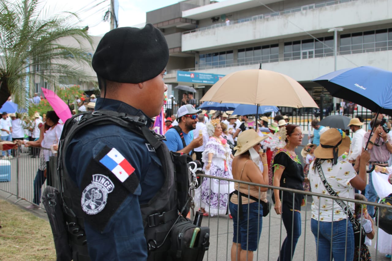 Unas 150 unidades de diversas Direcciones Zonas y Servicios de la Policía Nacional participaron del Primer Desfile "Nuestras Polleras" organizado por la Alcaldía de San Miguelito en el corregimiento de Rufina Alfaro.