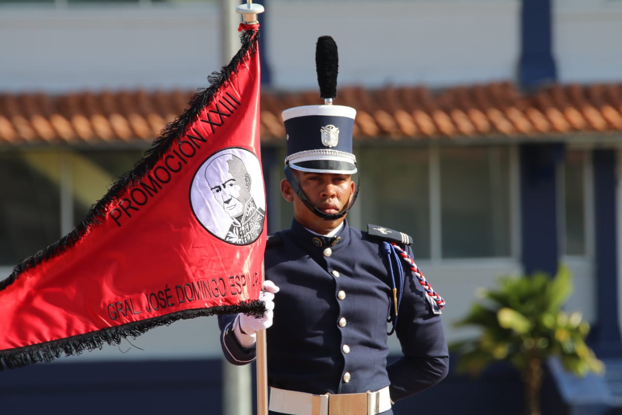 Un total de 90 alféreces se gradúan como subtenientes de la Promoción XXII General Tomás Herrera, en la ceremonia realizada en la Escuela de Oficiales de Policía Dr. Justo Arosemena, ubicada en el Fuerte Davis, en la provincia de Colón. La promoción conformada por 90 nuevos subtenientes se dividen en 45 oficiales que se formaron en la ESOPOL, de ellos 6 femeninas y 39 masculinos, de estos, 1 de República Dominicana, 1 de Costa Rica, 1 del SPI, 1 del Senan y 4 del Senafront. A esta ceremonia de graduación se unen 45 subtenientes de los diversos estamentos de seguridad del estado, egresados de diferentes centros de formación del extranjero como lo son: Brasil, Estados Unidos, México entre otros. Estos 90 jóvenes fueron juramentados por el Presidente de la República, Laurentino Cortizo Cohen, y recibieron de manos del mandatario de la nación, el sable que simboliza el mando, honor, valentía y compromiso con la Patria. El Director General de la Policía Nacional, John Dornheim, exhortó a los 90 nuevos oficiales a servir a la Patria con integridad, respeto a la democracia y estricto apego a la Ley. |