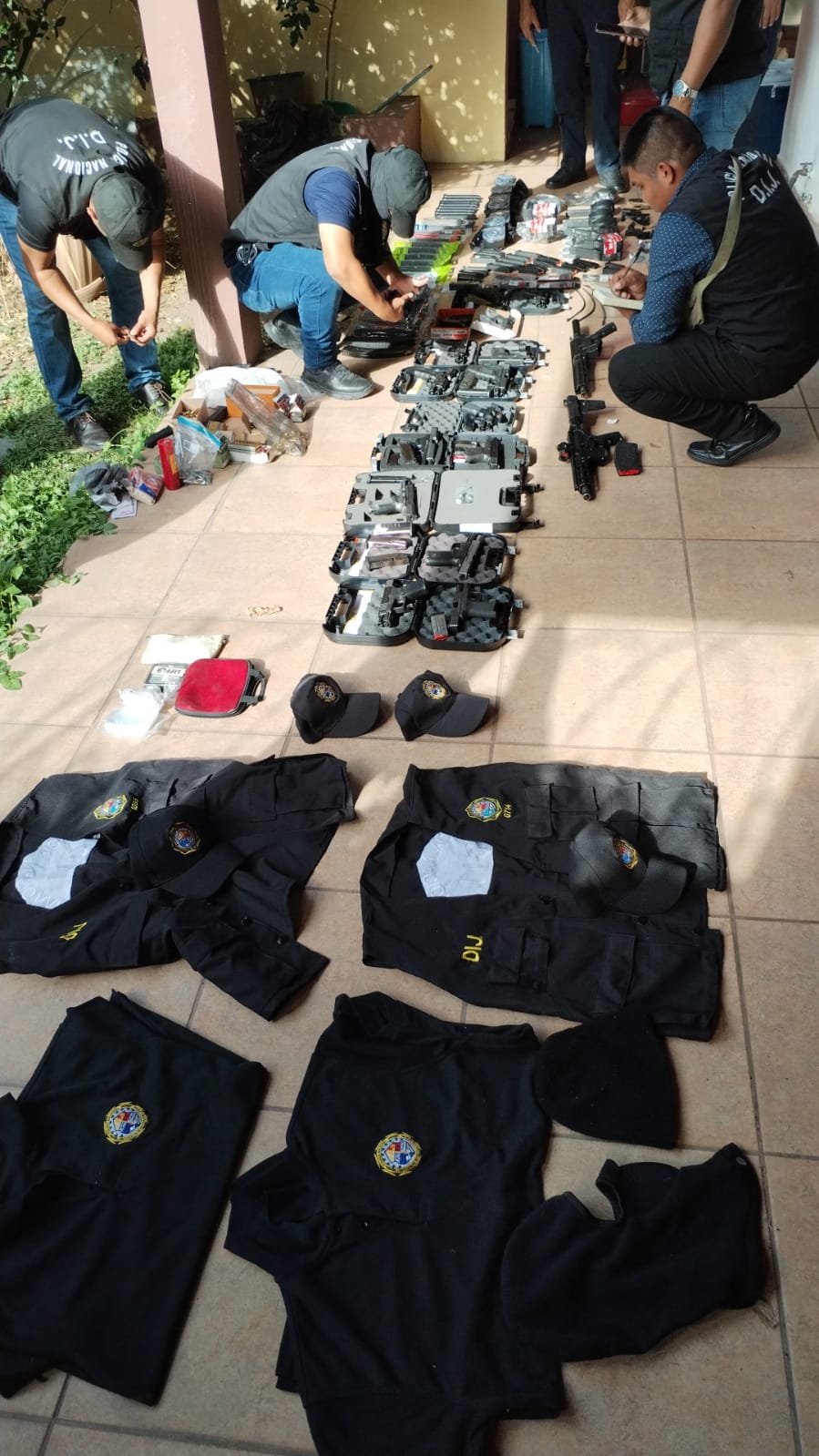 La Policía Nacional junto al Ministerio Público aprehendieron a dos personas adultas este domingo 12 de febrero, tras una importante incautación de armas de fuego durnate el allanamiento en una residencia ubicada en calle 1ra Oeste del sector de Brisas del Golf. En esta diligencia judicial fueron decomisadas 19 armas, entre ellas 15 pistolas de diferentes calibres, 2 fusiles AM15, 1 rifle de pellets, 1 réplica de arma, más de 700 municiones de diferentes calibres, 30 proveedores, accesorios de armas de fuego, sustancias ilícitas y pasamontañas. Además de 2 chalecos, 2 suéteres y 4 gorras que mantienen logos similares a los de la DIJ, así lo informó el Subcomisionado Héctor Delgado, Ejecutivo de la 17ava Zona Policial de Rufina Alfaro. También se recolectaron otros indicios como documentos varios y equipos tecnológicos. Este operativo estuvo a cargo de la Policía Nacional en coordinacion con el Ministerio Público, quienes inician las investigaciones tras este decomiso. |