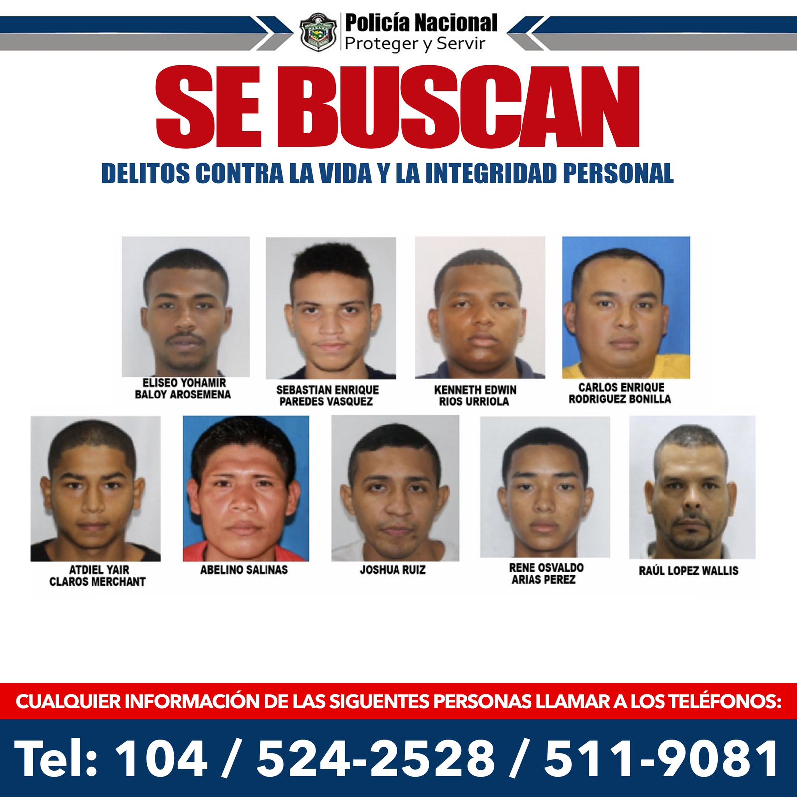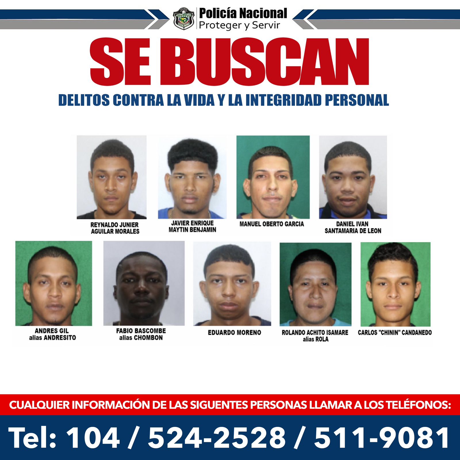 POLICÍA REITERA LA BÚSQUEDA DE 28 PERSONAS VINCULADAS A HECHOS DE HOMICIDIOS Y TENTATIVA DE HOMICIDIO