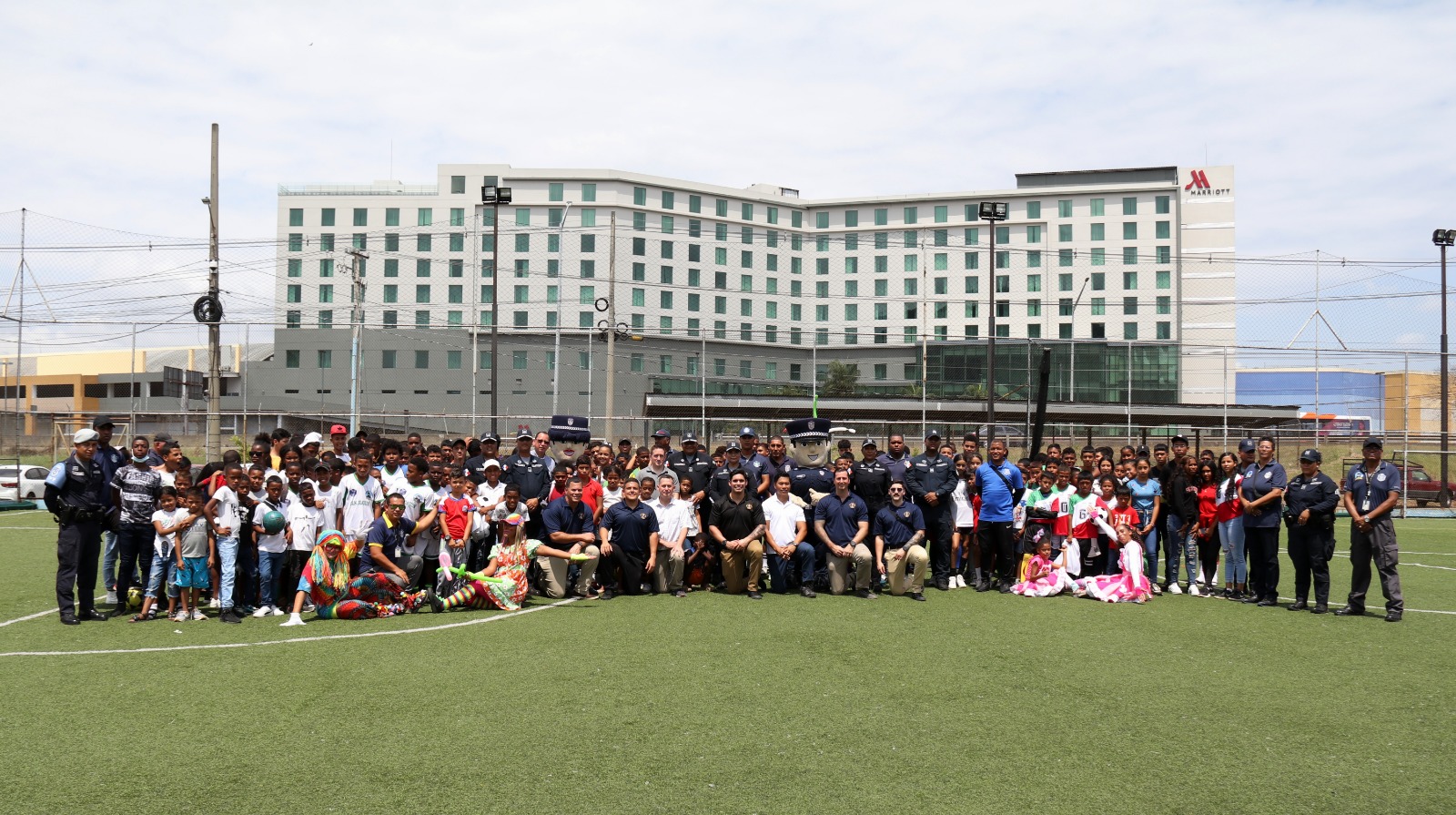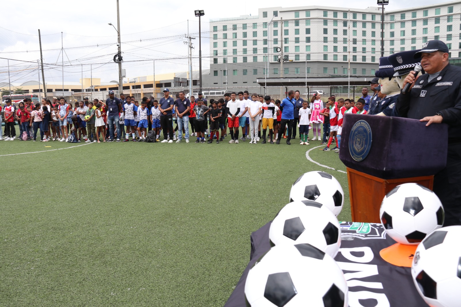 La Cancha Deportiva de la Policía Nacional fue el escenario para recibir por parte de la Embajada de los Estados Unidos la donación de Kits Deportivos y Carpas. Correspondió al Jefe De Los Programas Preventivo y Sociales, Subcomisionado Ricardo Fruto y a su personal, recibir de manos del Teniente Coronel Jefri Reed y su equipo de trabajo esta significativa donación, que consiste en Kits Deportivos y Carpas deportivas en el marco de la celebración del cierre de verano, actividad deportiva y recreativa, dirigida a un aproximado de 300 niños y niñas, quienes participan en los programas de Prevención Social y Comunitarios que desarrolla nuestra institución en más de 48 comunidades donde existen niños en riesgo social. El Subcomisionado Ricardo Fruto, de la Policía Nacional agradeció esta donación que busca fortalecer los diferentes programas de prevención como Uniendo Fuerza Contra La Delincuencia. Por su parte Alejandro Wallis, de la Embaja de los Estados Unidos indicó que esta cooperación busca fortalecer el trabajo de la línea 104 que viene impreso en estos implementos. Nuestra institución continúa trabajando de manera permanente llevando prevención social y crecimiento comunitario en diversos puntos de nuestro país. |
