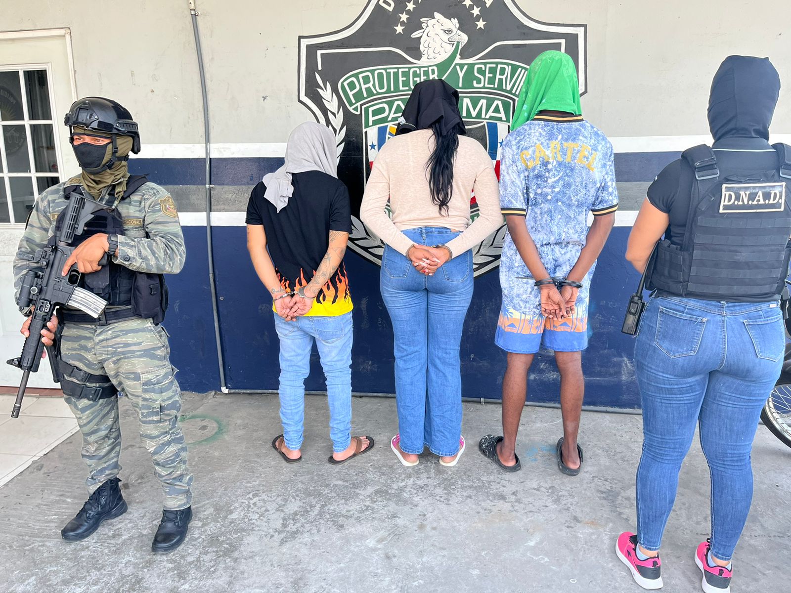La Policía Nacional a través de la Dirección Nacional Antidrogas y el Ministerio Público mediante diligencia de allanamiento aprehende a cinco personas entre ellas dos menores de edad, quienes mantenían en su poder cierta cantidad de presunta sustancia ilícita, pesa digital entre otros artículos, dijo el Comisionado José Ríos, Jefe de la Zona Policial de Pacora.